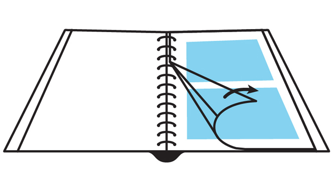 Ridicați folia de protecție, așezați fotografiile și puneți la loc folia transparentă – și gata, mai simplu nu se poate! Perfect pentru fotografii de dimensiuni variate, precum și pentru decupaje din ziare sau alte materiale pe care nu doriți să le lipiți permanent. Dezavantajul este că nu puteți scrie pe pagini, așa cum puteți face în majoritatea celorlalte tipuri de albume.