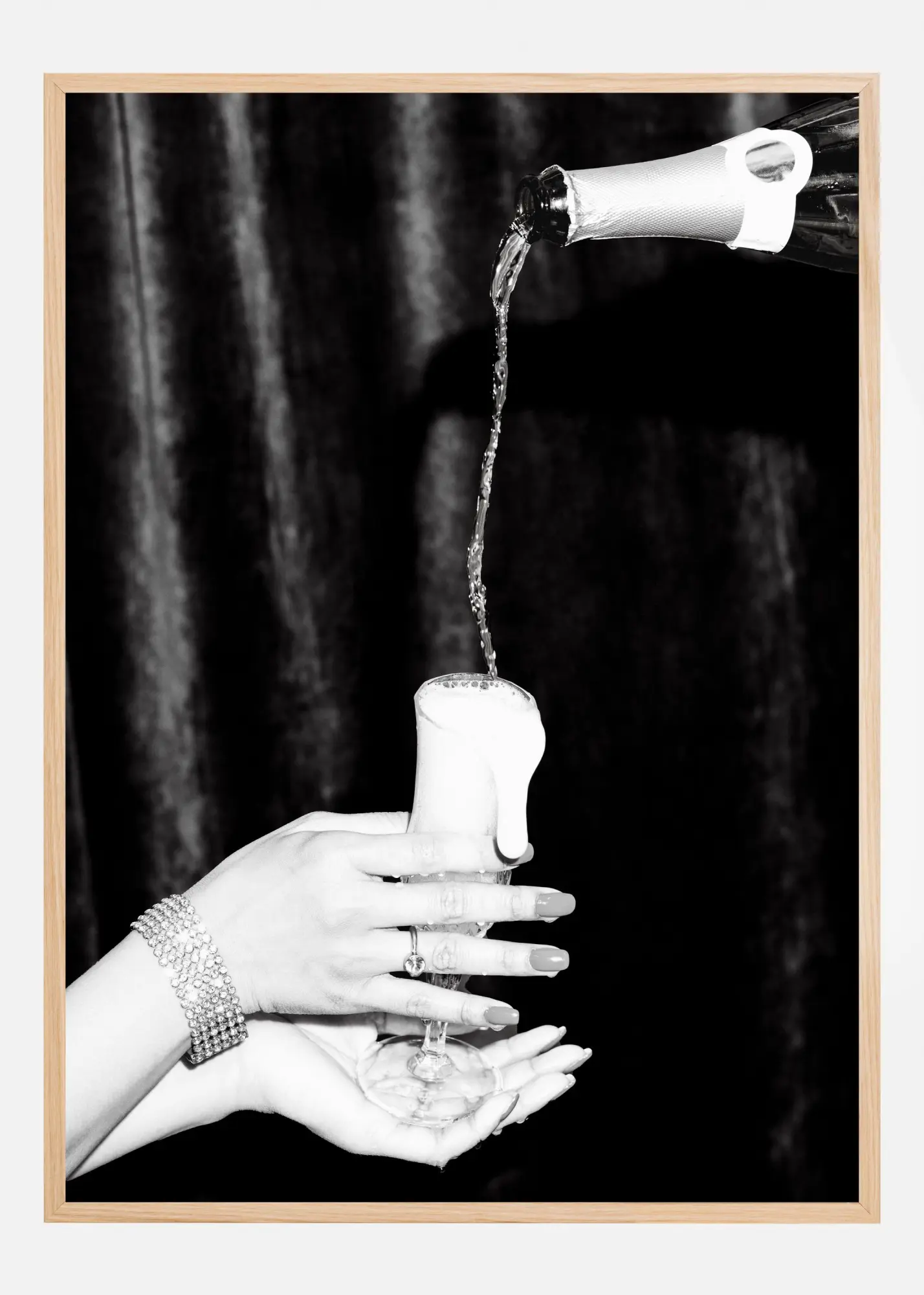 Champagne Hands Bw Poster
