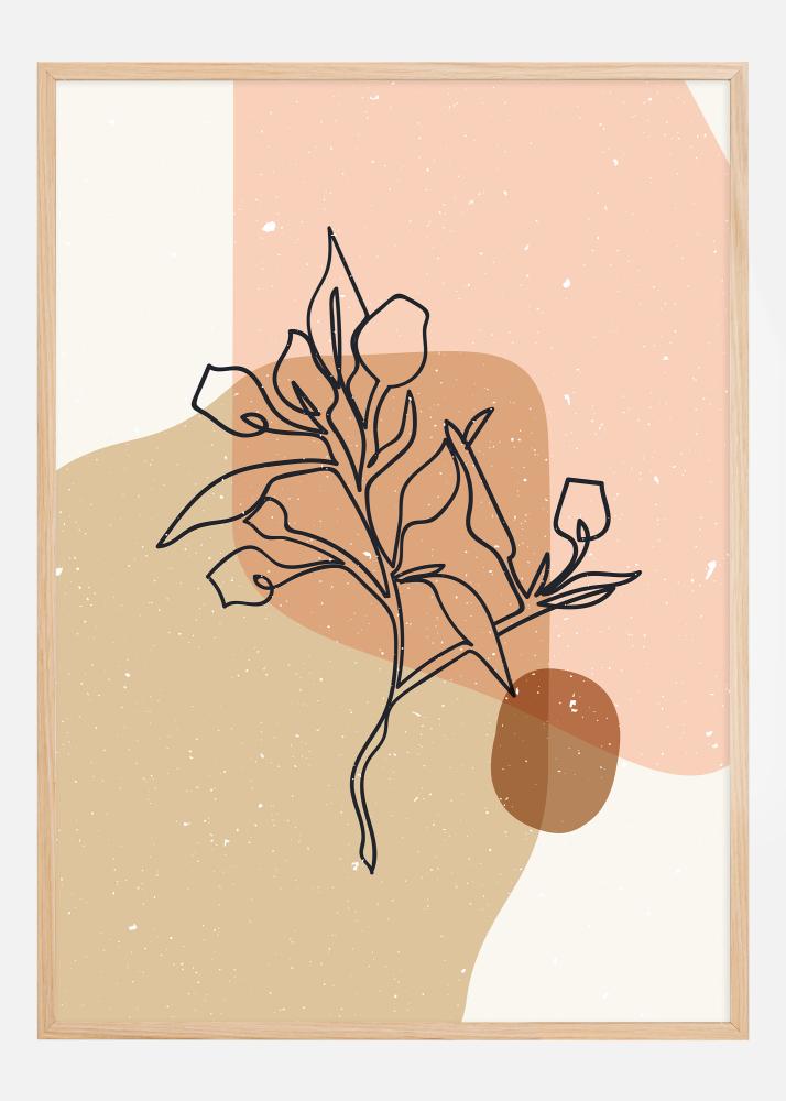 Această poster elegant și minimalist de o ramură de plantă abstractă aduce o paletă de culori liniștitoare care oferă imediat o impresie sofisticată și relaxată. Lucrarea de artă combină forme și linii organice într-o serie de forme suprapuse, ceea ce creează un sentiment de adâncime și complexitate, în ciuda designului său aparent simplu.