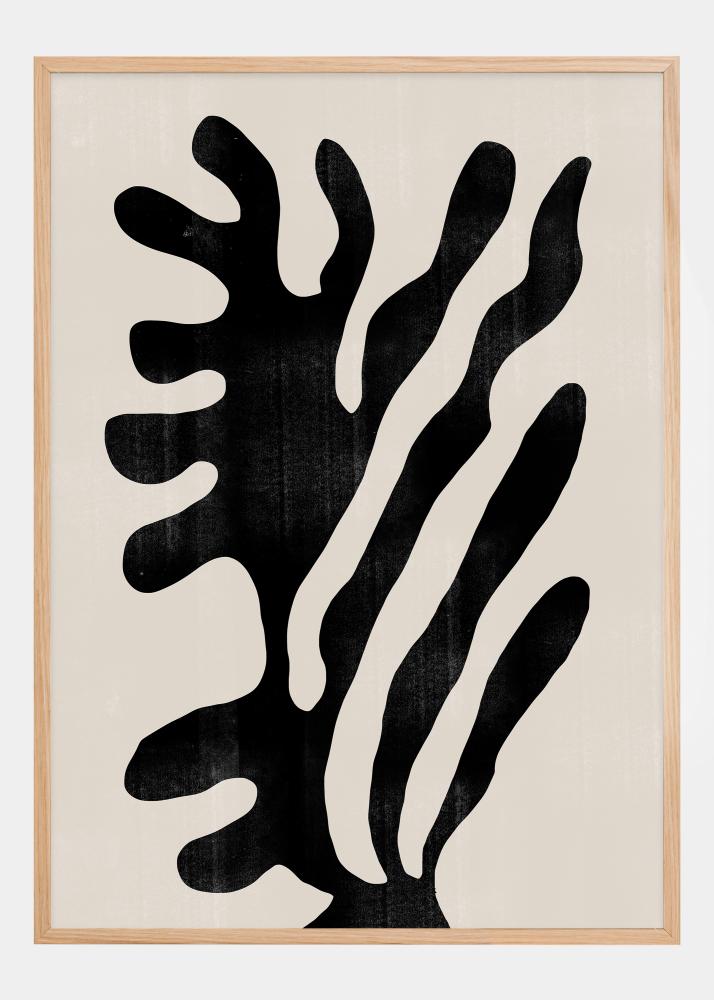 Cu o expresie puternică și abstractă, acest poster invită la o interpretare a forței vitale a naturii. Formele negre îndrăznețe, care amintesc de o frunză de plantă sau de o floare exotică, contrastează cu fundalul alb crem, creând un efect dinamic și dramatic. Această operă de artă capturează frumusețea organică a naturii printr-un limbaj minimalist, dar îndrăzneț.