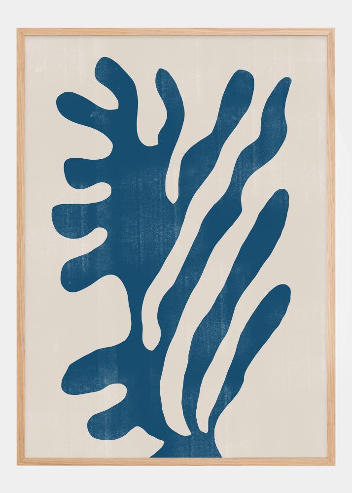Această poster curajos și plin de viață capturează esența unui frunziș abstract cu liniile sale ondulate albastre pe un fundal cremos. Motivul stilizat amintește de vegetația subacvatică sau de penele care dansează în vânt, oferind o senzație de libertate și natură. Această lucrare de artă combină frumusețea organică cu o estetică modernă de design grafic.