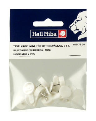 Achiziționați un set de 7 cârlige pentru tablouri potrivite pentru pereți de beton, care vă scutesc de găurit și de bătăi de cap cu dibluri. Această dimensiune mică este perfectă pentru afișe sau decorațiuni de perete mai ușoare. Se agăță cu cârligul îndreptat în sus.