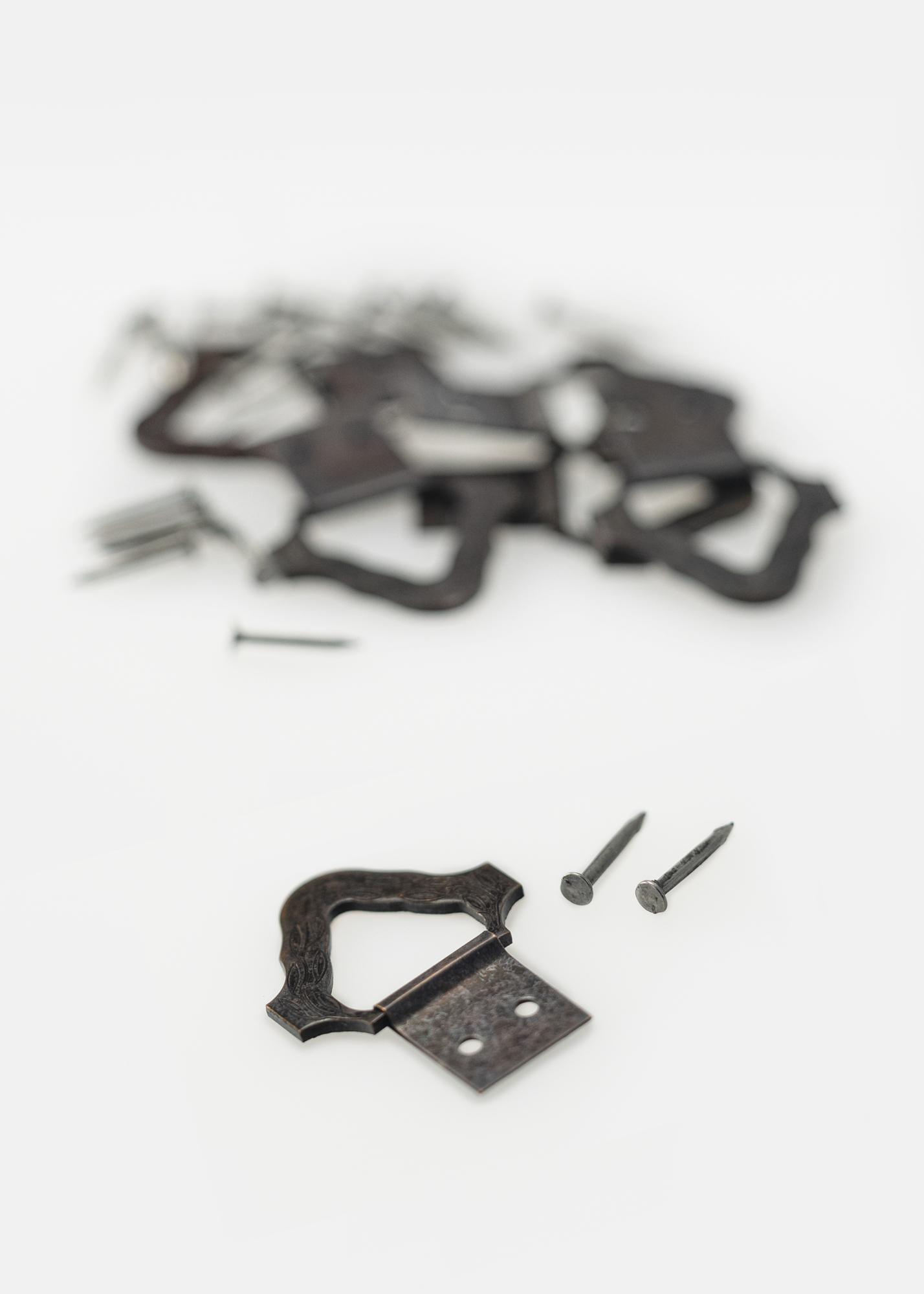 Un suport triunghiular puțin mai exclusivist care se bate pe partea din spate a ramei. Se potriveste excelent pentru rame mai vechi și puțin mai elegante. Suportul este conceput pentru a fi vizibil deasupra ramei când agăți rama. Alegi singur dacă folosești unul sau două suporturi. Acesta este realizat pentru rame puțin mai mari (dimensiuni maxime ale ramei: 50x60 cm).
