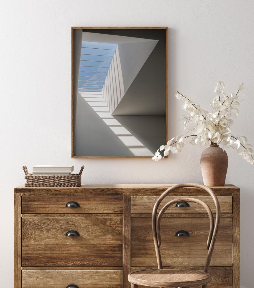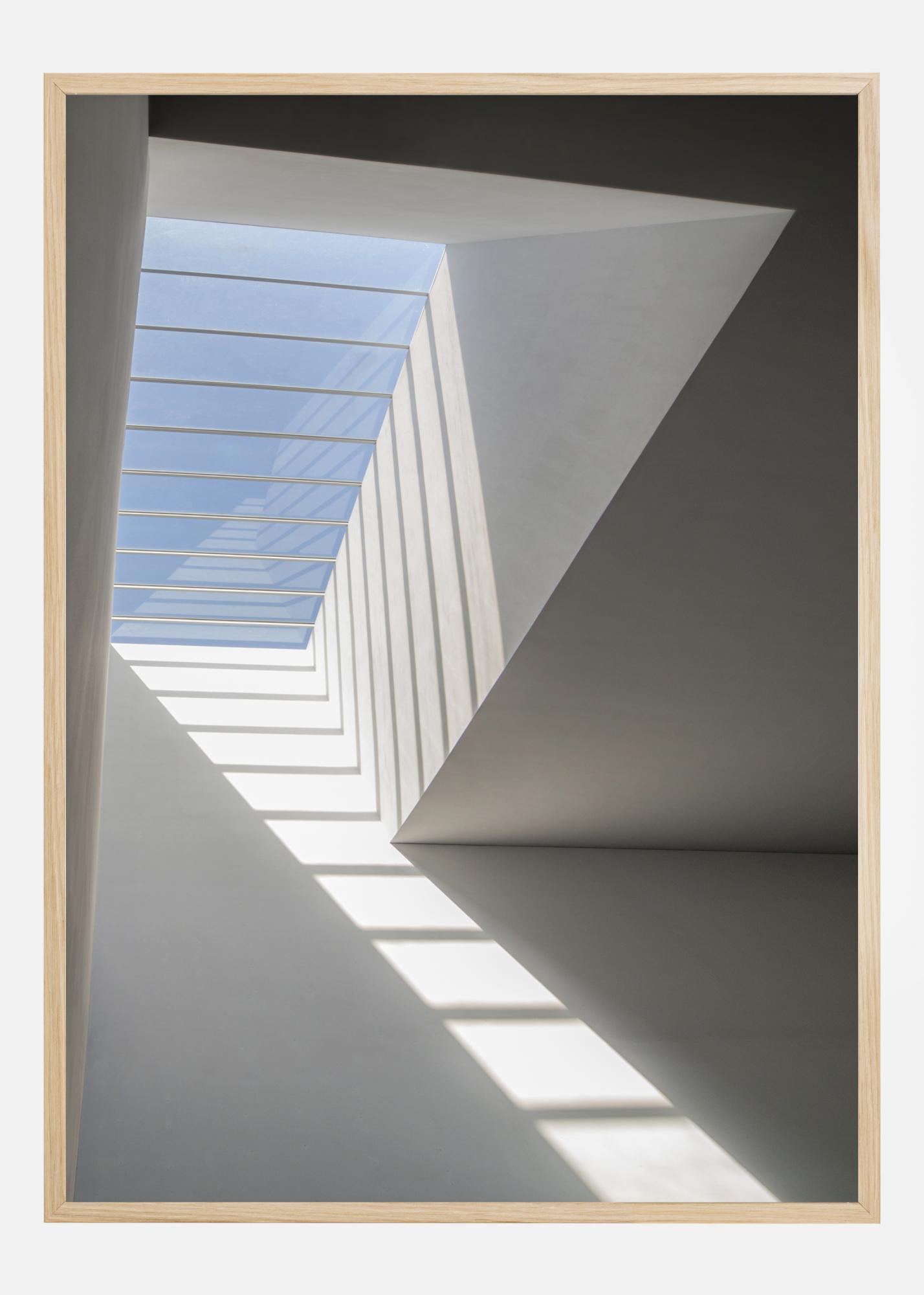 Un poster simplu și aerisit într-o cameră luminoasă albă. În stânga se află o fereastră în tavan cu un cer albastru. Lumina care pătrunde aruncă umbre ce par a fi o scară care conduce privirea spre lumina de afară. Atrage luminozitatea într-o cameră întunecoasă cu ajutorul acestei imagini liniștite.