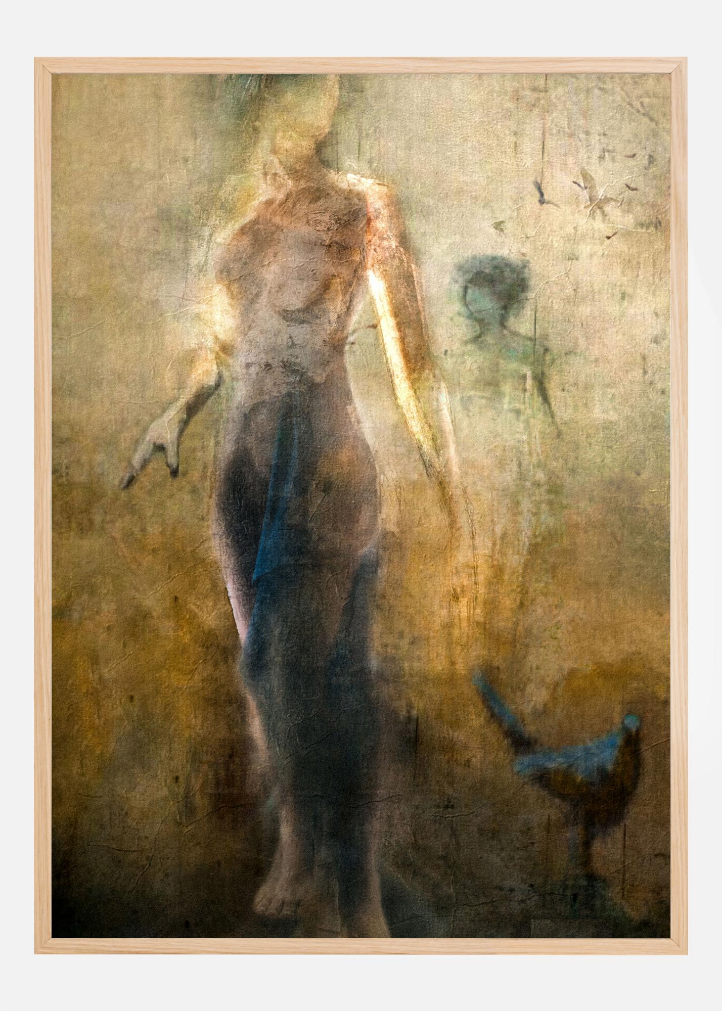 Captează privirea cu acest poster misterios și sugestiv care pare să spună o poveste dincolo de cea vizuală. Motivul explorează teme de identitate și memorie printr-o figură care apare dintr-un fundal inspirat de grunge. Elementul abstract al operei de artă apare prin apariția difuză, aproape fantomatică, a figurii și aluziile subtile ale unei siluete în fundal, în timp ce o pasăre singură pare să plutească liber.