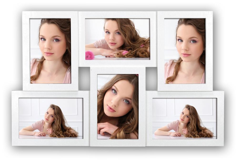 Colaj modern alb ramă colaj cu spațiu pentru 6 imagini atât în format orizontal, cât și vertical. Perfectă atunci când vrei să creezi un colaj foto personalizat de agățat pe perete.