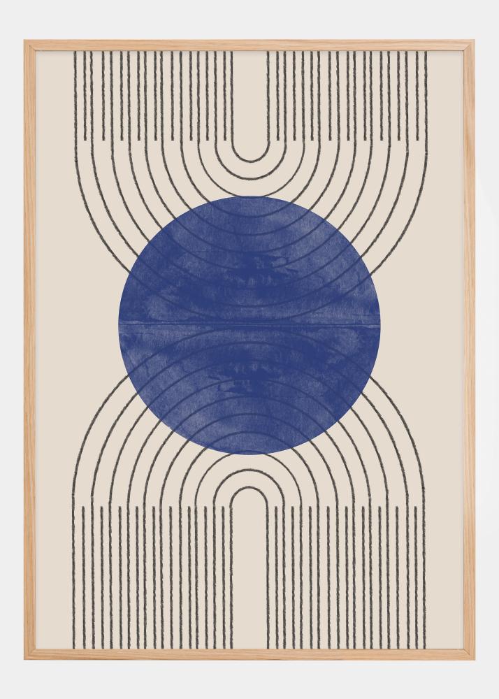 Creează o atmosferă liniștită și echilibrată în camera ta cu posterul nostru abstract care îmbină linii moi și culori îndrăznețe. Cercul mare albastru din mijloc oferă o senzație palpabilă de liniște și este ca o poartă către o altă lume, încadrată de o serie de arcuri concentrice care creează o senzație arhitecturală. Această operă de artă îmbină tradiția cu modernitatea și oferă un echilibru pașnic ambientului tău.