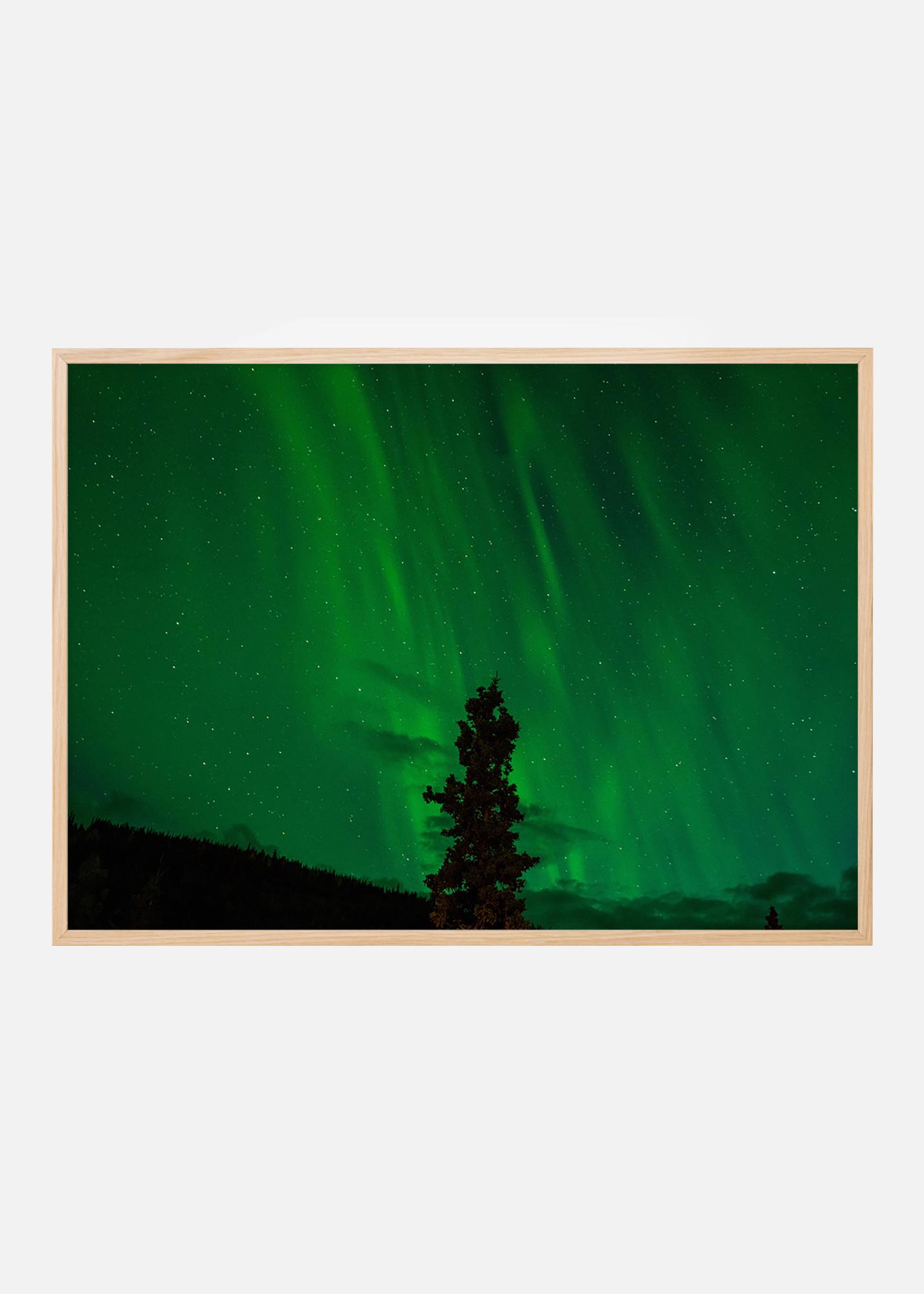 Capacitatea aurora boreală de a fascina nu încetează niciodată, este unul dintre fenomenele mărețe ale naturii. O fotografie aproape abstractă cu o lumină verde clară este o operă de artă care într-adevăr ocupă un loc pe perete și ar trebui să primească spațiul pe care îl cere. Potrivit pentru a fi agățat singur sau combinat cu alte motive grafice puternice care nu dispar lângă.