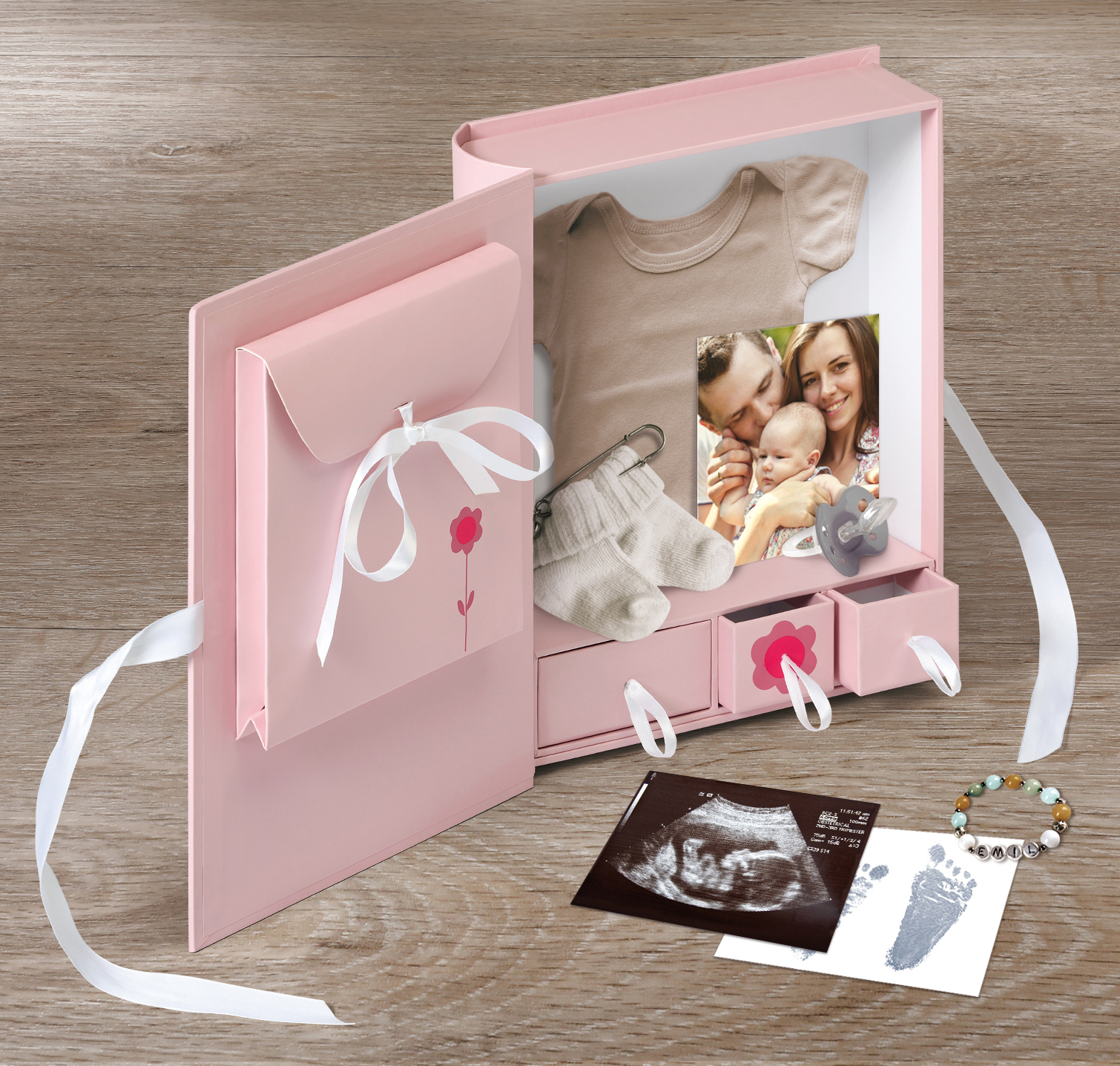 Această cutie de amintiri este atât practică, cât și drăguță. Ea devine un cadou minunat de oferit proaspeților părinți – și, desigur, poți să îți faci o plăcere cu această cutie de depozitare frumoasă! Este potrivită pentru depozitarea suzetelor, hainelor mici, cardurilor de felicitare, fotografiilor și altor amintiri din primul an al bebelușului.
