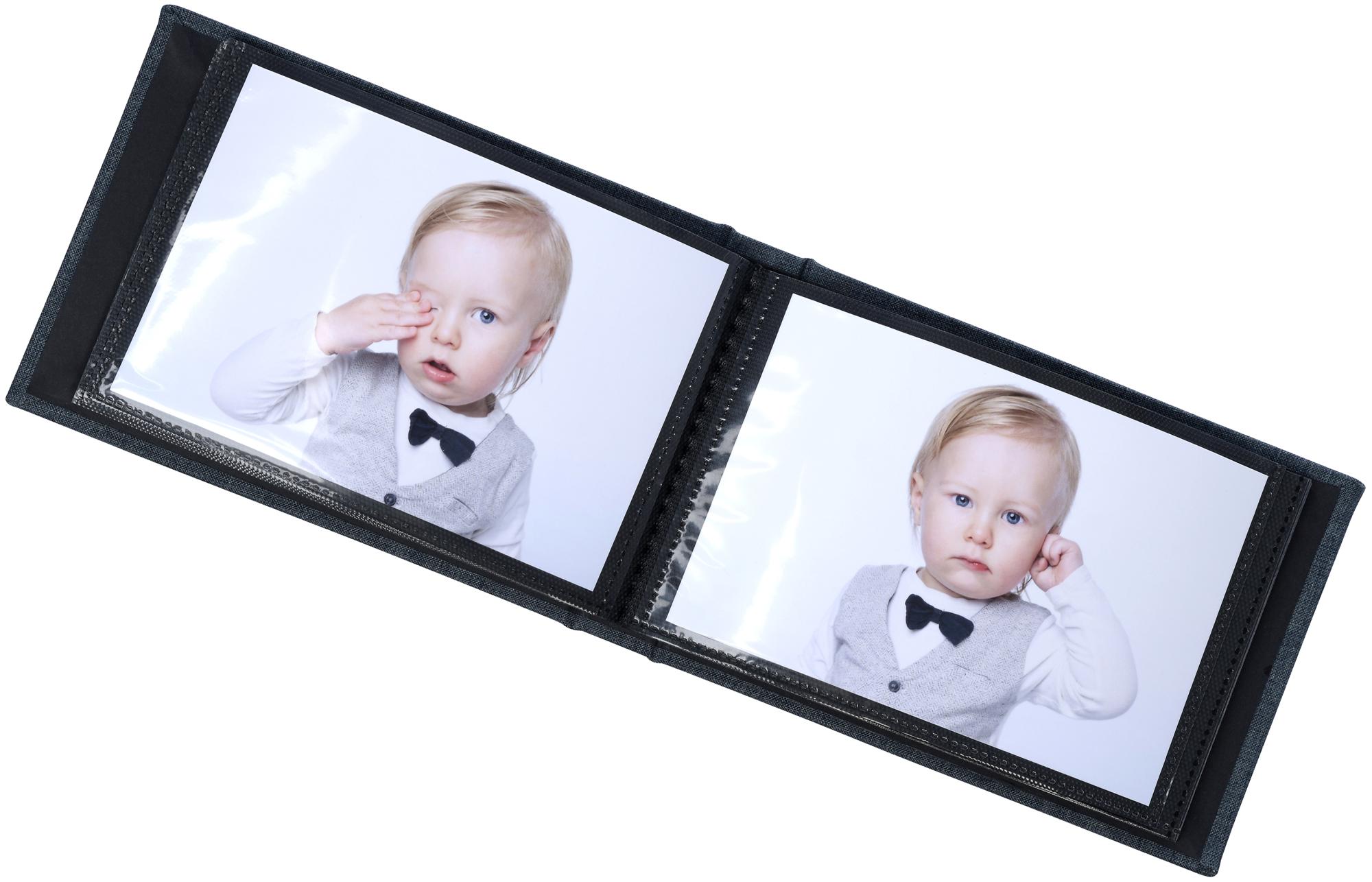 Paginile albumului sunt, de asemenea, prevăzute cu buzunare pentru fotografii, în care poți introduce cu ușurință pozele tale.