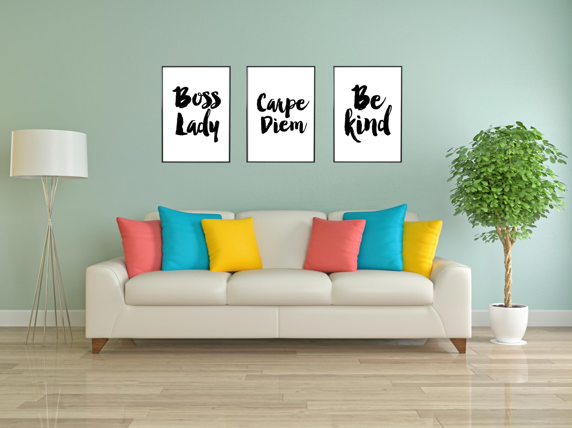 Postere la modă care pot fi combinate cu alte motive decorative pentru a crea un perete modern.