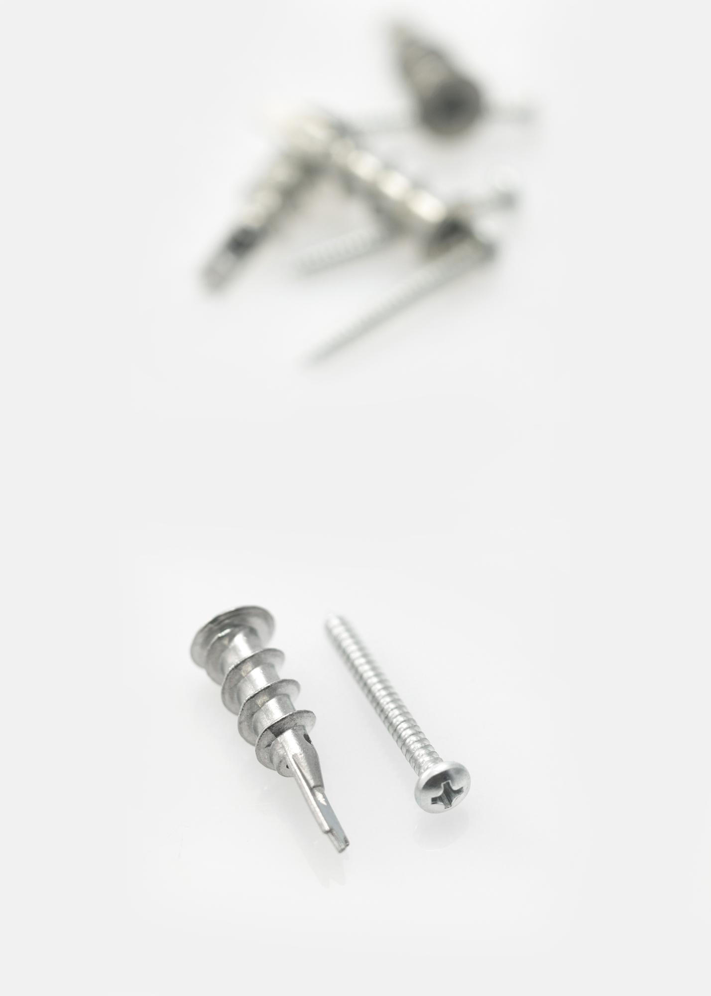 Ancore din gips autoforante în set de 4 bucăți. Trebuie doar să înșurubezi diblul și apoi șurubul, și ești gata. Nu este nevoie să forezi. Se potrivește perfect pentru toate tablourile noastre care urmează să fie montate pe pereți din gips.