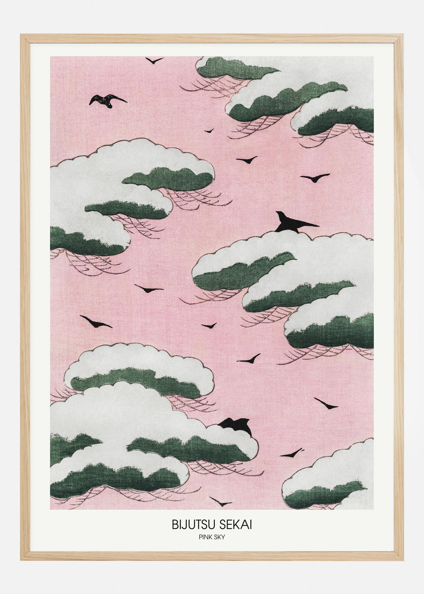 Această poster calmant și poetic intitulat „Bijutsu Sekai Pink Sky” surprinde esența unei dimineți sau seri liniștite cu cerul său roz pal ca fundal pentru norii plutitori eleganți și siluetele păsărilor în zbor. Această imprimare este o oază de liniște și s-ar potrivi perfect într-un dormitor sau într-un spațiu de meditație, unde poate aduce un sentiment de pace și reflecție.