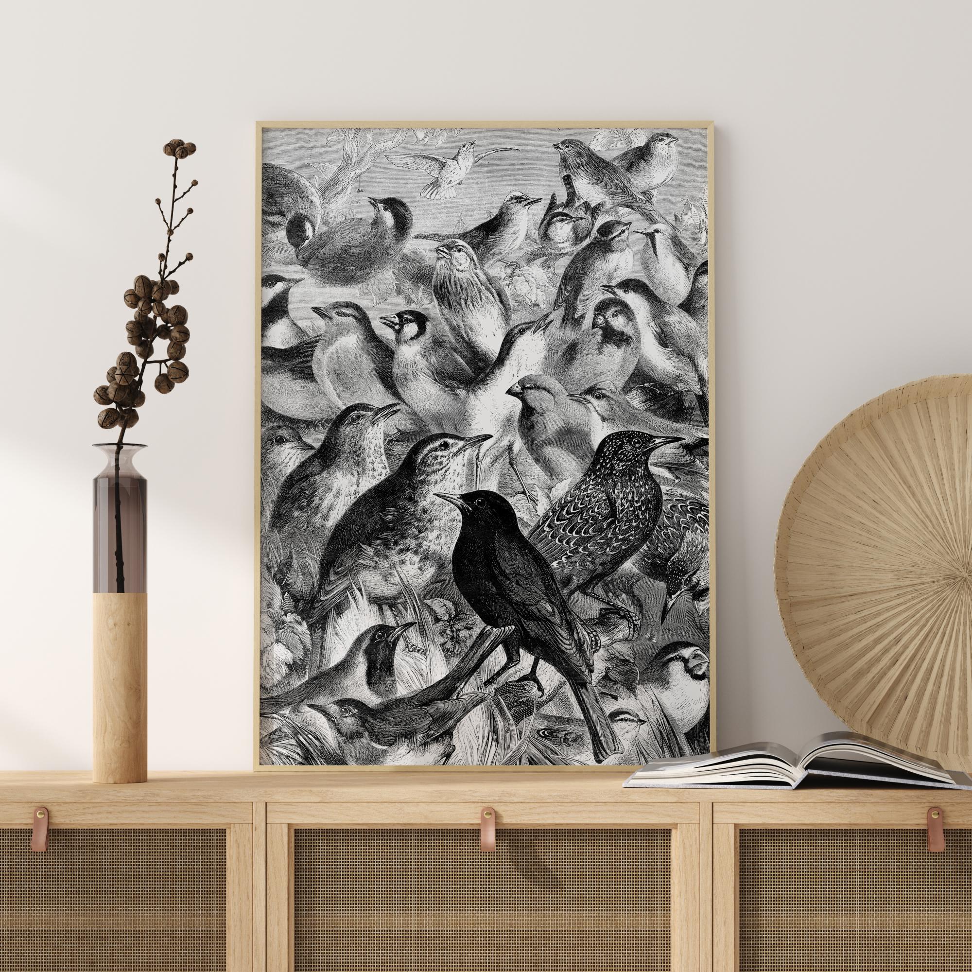 Un poster alb-negru cu diverse păsări. Învață totul despre păsări cu ajutorul acestui print ce conține diverse păsări britanice. Fii ocupat în timp ce descoperi păsările din imagine și învață ceva despre ele. Permite-le să iasă și mai mult în evidență prin agățarea imaginii pe un perete de culoare deschisă.