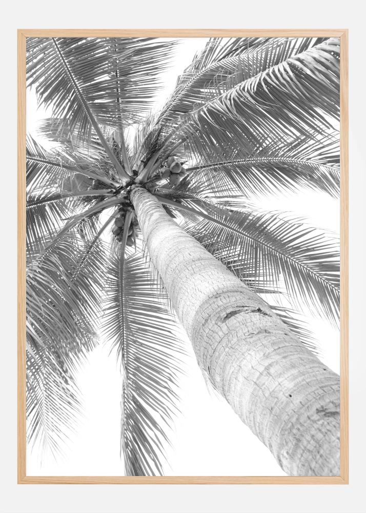 Această poster minimalistă și elegantă alb-negru prezintă un palmier dintr-o perspectivă neobișnuită, privirea fiind îndreptată în sus spre cer. Contrastul dintre frunzele detaliate ale palmierului și scoarța netedă creează o textură dinamică care surprinde esența frumuseții tropicale. Tratamentul alb-negru adaugă un sentiment atemporal și sofisticat care înalță decorul fiecărei camere.