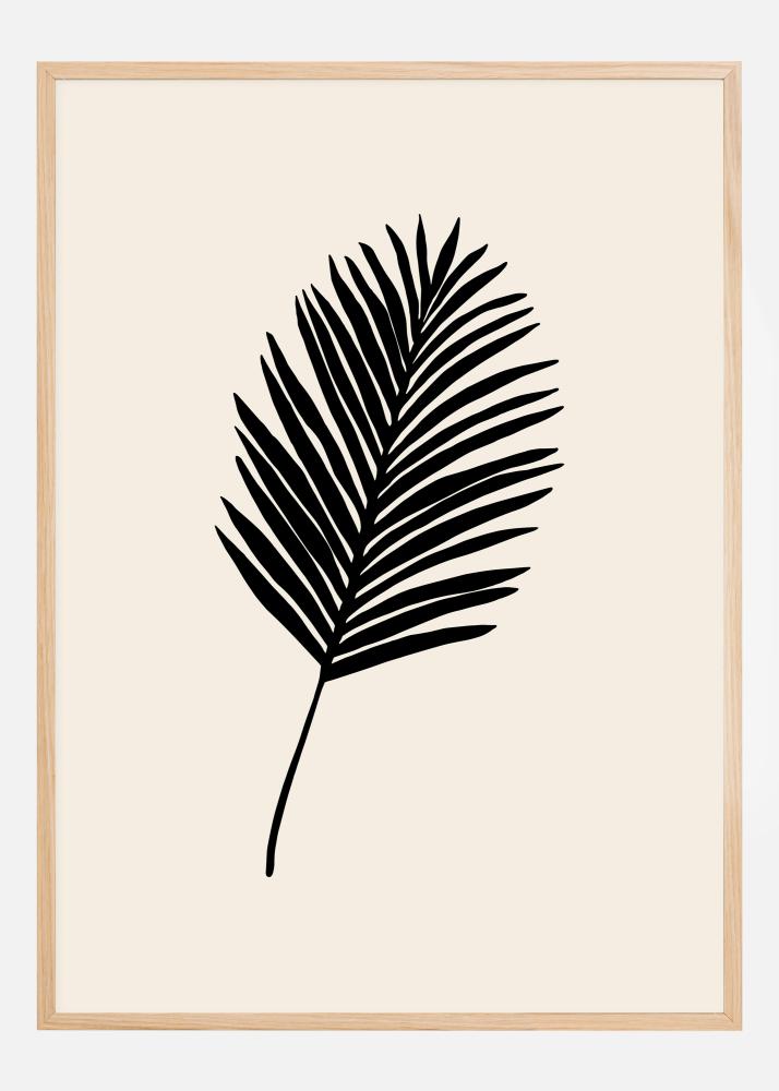 Un poster elegant cu o singură frunză de palmier neagră în mijloc pe un fundal alb. Fiecare dintre franjurile din acest imprimeu iese în evidență atât de clar încât le poți număra pe toate. Pentru o expresie simplă, poți agăța această imagine pe un perete colorat pentru un efect puternic, dar nu copleșitor.