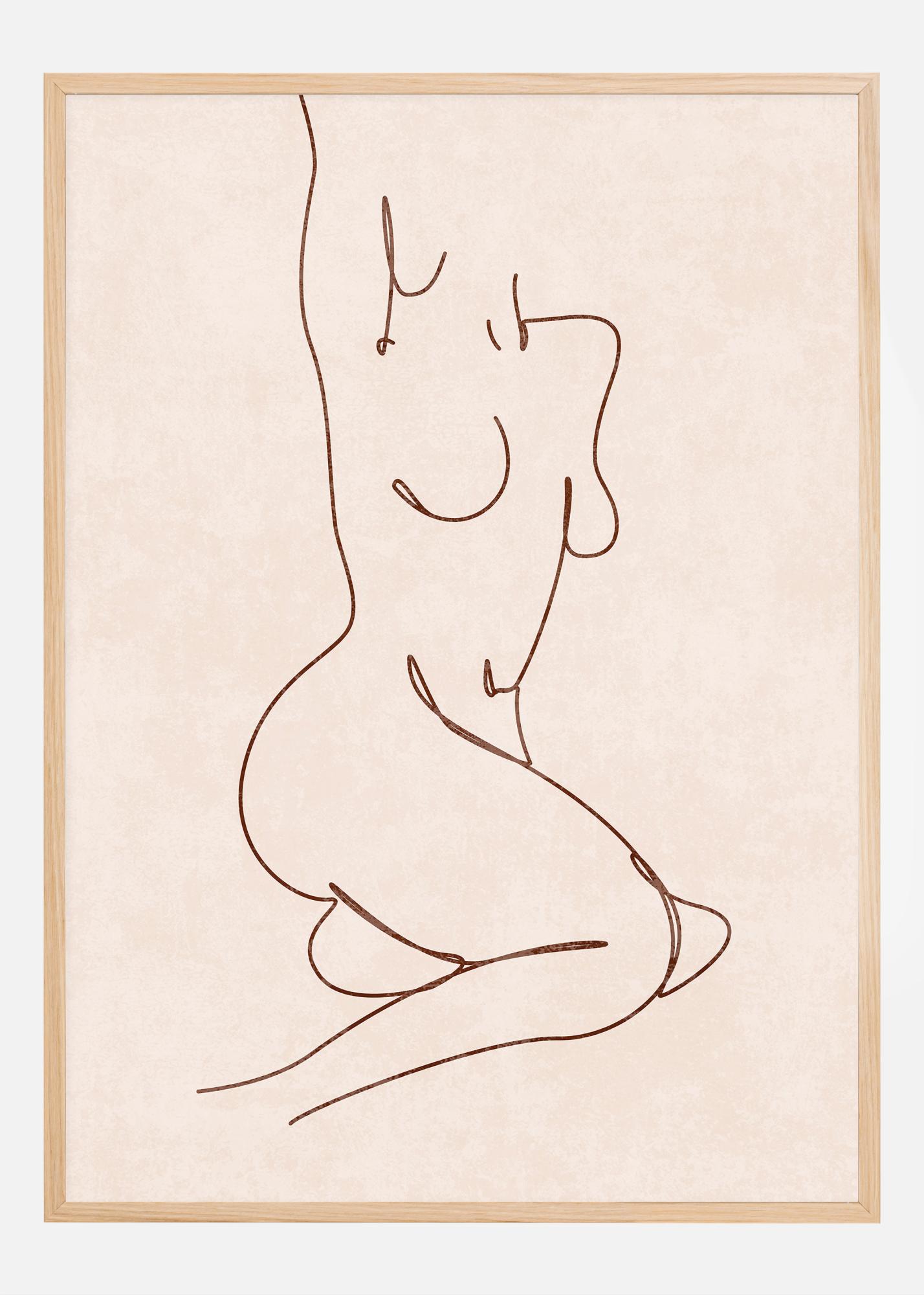 Această poster elegant și minimalist redă o figură feminină într-o linie simplă și fluidă. Expresia subtilă a artei și stilul său epurat sunt un omagiu adus simplității frumuseții. Conturul sugestiv creează o imagine puternică cu detalii minimale, ceea ce o face o interpretare contemporană a frumuseții clasice și a curbelor naturale ale corpului.