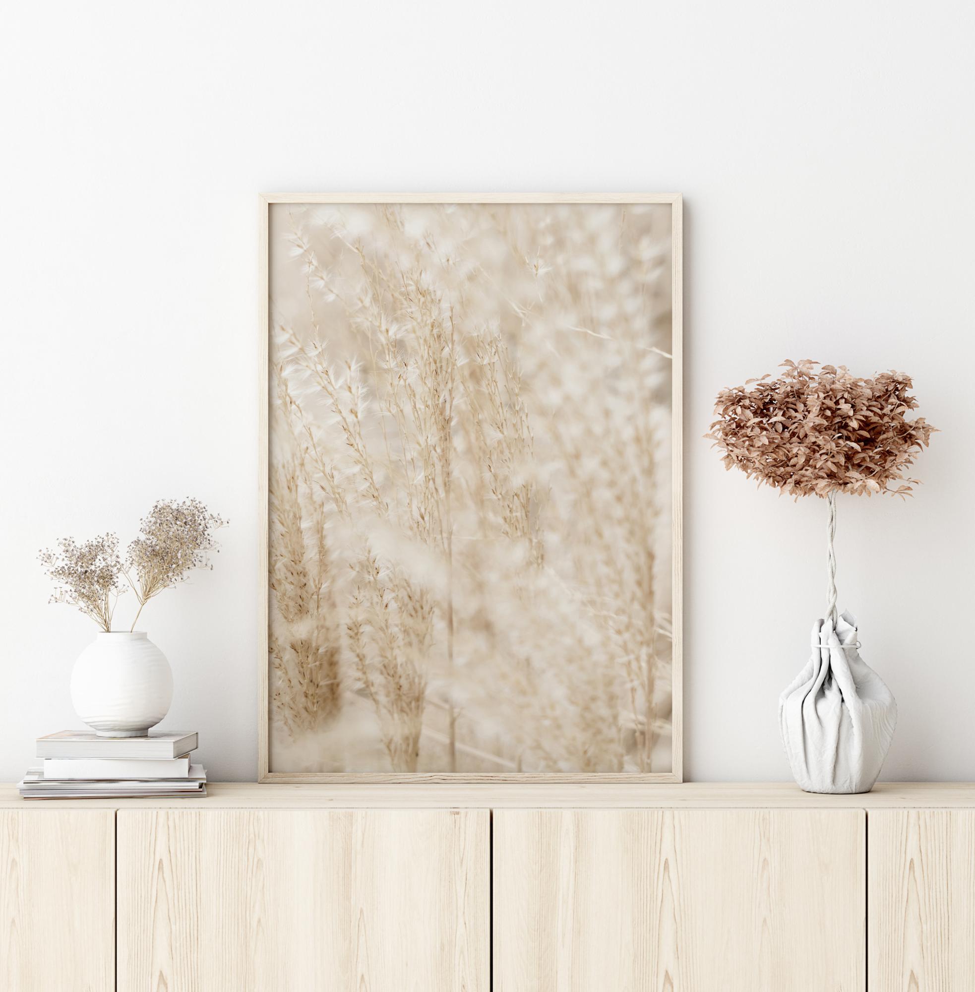 Un poster auriu moale cu un câmp. Imaginea este relaxantă, cu spice de grâu ușor în focalizare, capetele moi fiind luminate într-o strălucire albă aproape angelică. Pentru o privire eterică ușor liniștitoare, aceasta este lucrarea perfectă de agățat pe unul dintre pereții contrastanți ai casei.