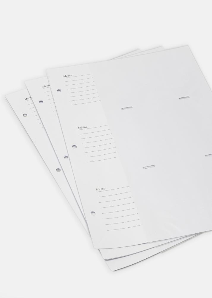 Foile de album care se potrivesc cu seria noastră de albume la modă KAILA Coffee Table Album XL. Foile de album albe pot găzdui 60 de imagini de 11x15 cm și au un câmp de text lângă fiecare fotografie, astfel încât să poți nota amintiri și observații pentru fiecare fotografie.