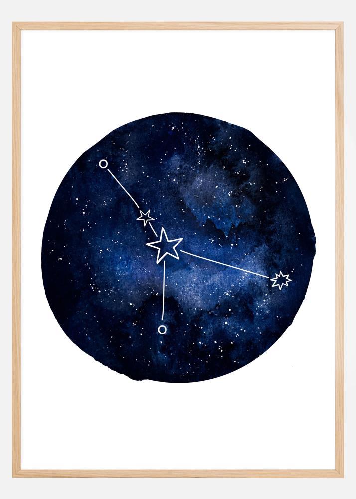 Un poster horoscop cu Racul. Un cerc albastru închis umple centrul acestei imagini albe. În cerc sunt diferite nuanțe de albastru, precum și diverse stele. Semnul zodiacal al Racului este proeminent în centru. Dacă îți iubești semnul zodiacal, această imagine este un must-have pe peretele tău.