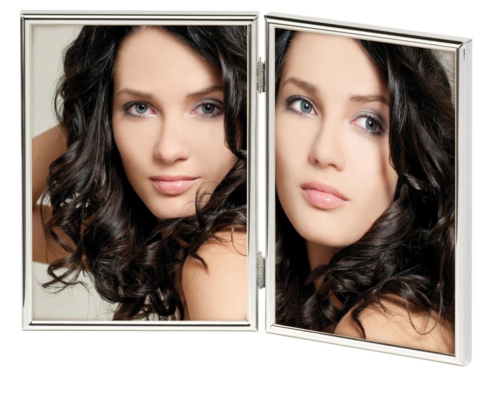 Chloe vikram este o ramă elegantă de portret cu un profil rotunjit în argint nou, potrivită pentru 2 imagini de dimensiunea 13x18 cm. Chloe este o ramă de înaltă calitate de la Walther, cu partea din spate acoperită cu catifea neagră.