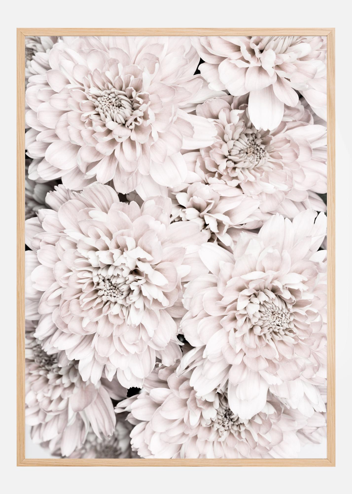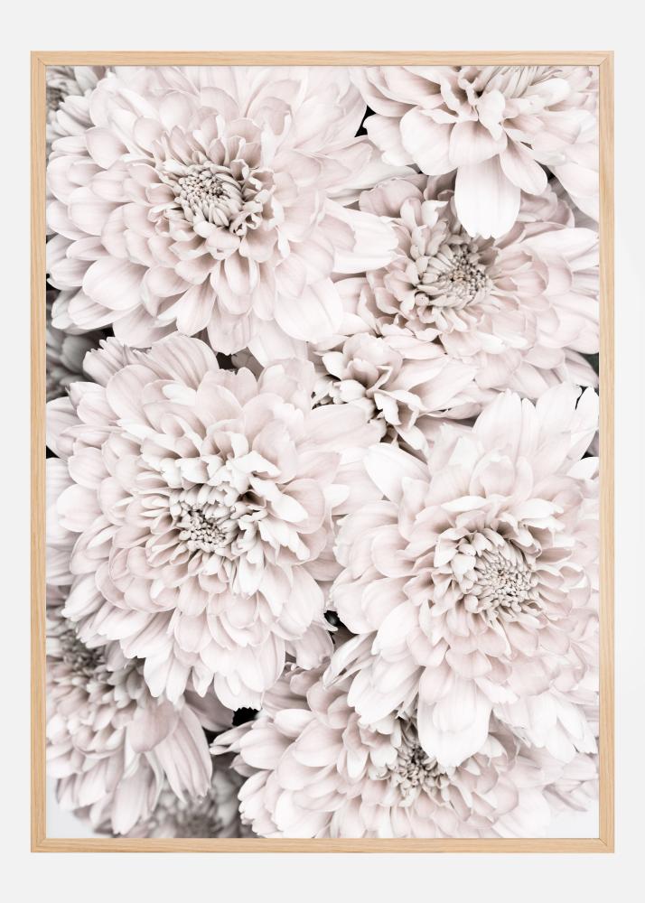 Un poster elegant cu o colecție de diferite crizanteme. Patru înfloriri mari de crizantemă umplu această imagine, fiecare delicată și plină de petale mici. Potrivește tonurile roz și alb moi cu un perete neutru în dormitorul tău pentru o trezire magică.