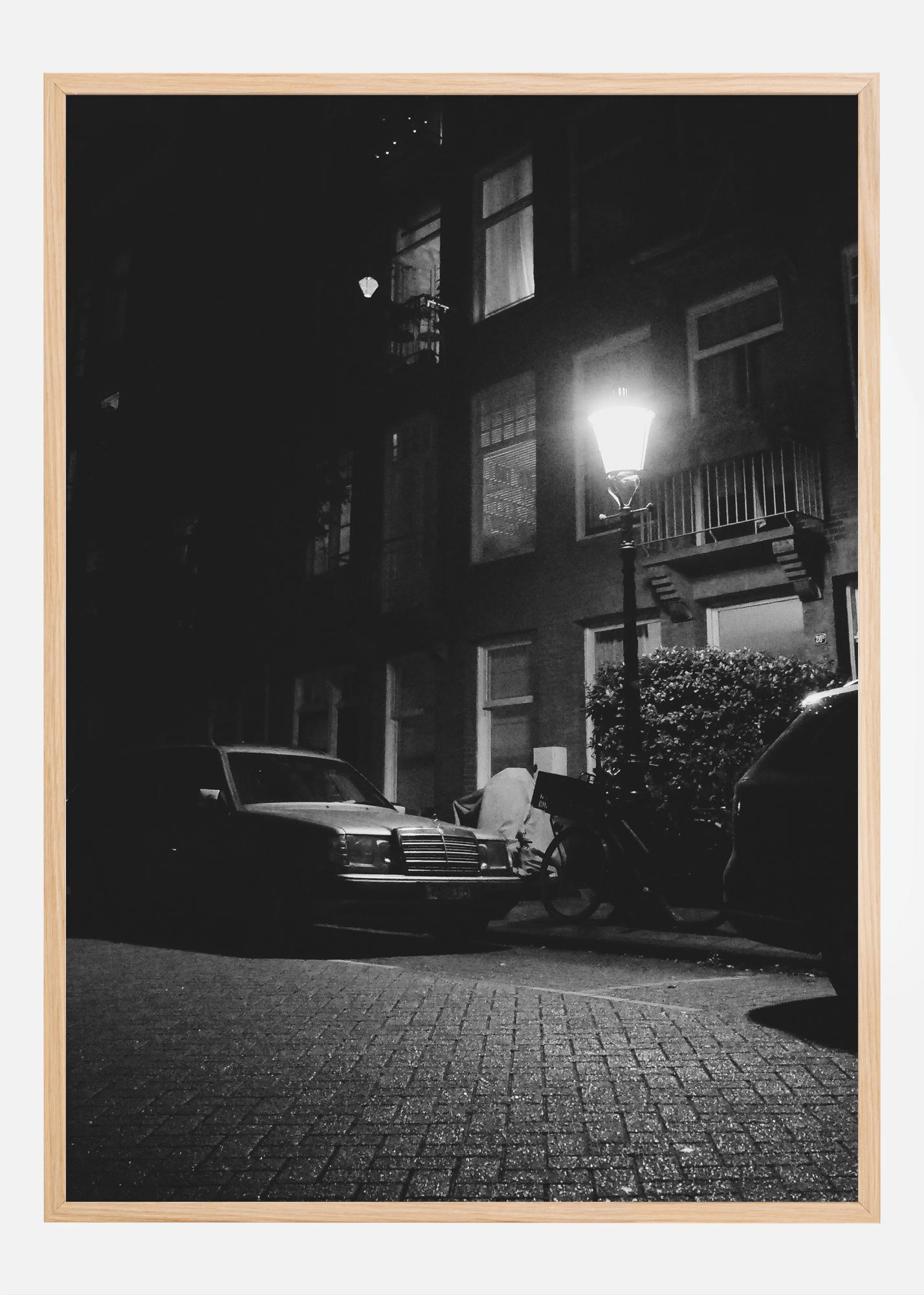 Această poster captivant oferă o privire asupra vieții urbane în momentul în care se lasă noaptea. Un felinar solitar îmbăiază trotuarul și mașinile parcate într-o strălucire moale și caldă. Subiectele sunt capturate într-o paletă monocromă care amplifică contrastele și detaliile acestei peisaje urbane liniștite. Acest print este perfect pentru a introduce o senzație de liniște și reflecție în orice încăpere, amintind de momentele calme în ritmul altfel vibrant al orașului.