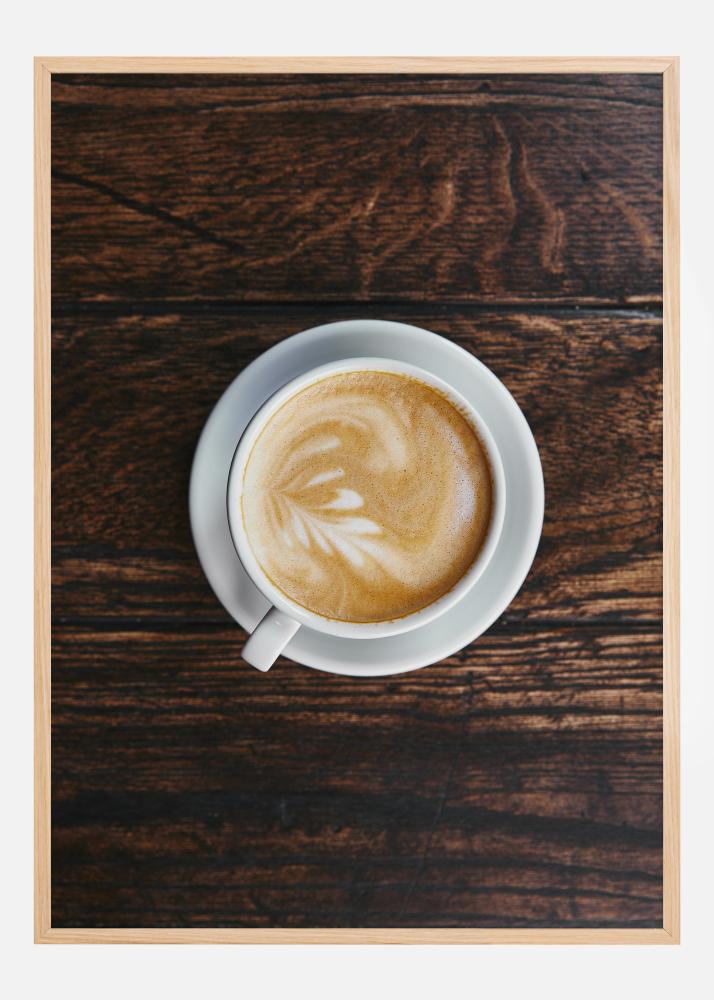 Afișul acesta primitor și călduros este un omagiu adus culturii cafelei și este perfect pentru orice iubitor de cafea. O vedere de sus a unei cești clasice de cafea albă pe o suprafață de lemn maro închis transmite un sentiment imediat de confort și o pauză în viața de zi cu zi. Spuma de pe cafea are un model artistic fin, care invită la un moment de relaxare și plăcere.