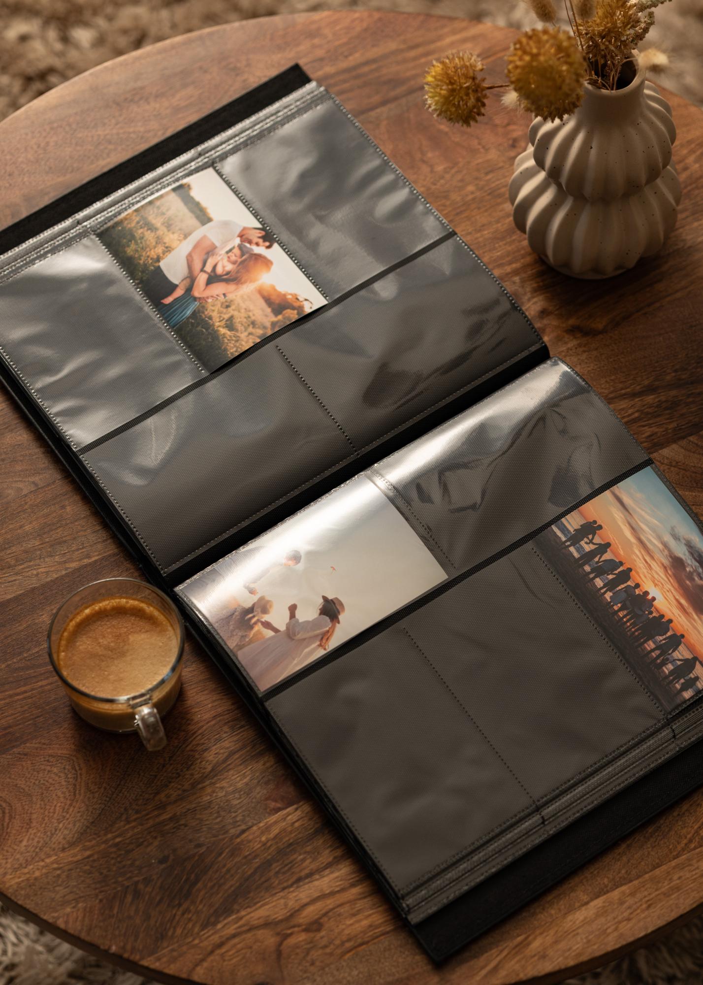 Caracteristica unică a acestui album foto este sistemul său practic de buzunare pentru fotografii, ceea ce face montarea și schimbarea fotografiilor rapidă și ușoară. Orientarea fotografiilor în album este atât pe orizontală, cât și pe verticală, oferindu-ți flexibilitatea de a-ți aranja fotografiile exact cum dorești. Paginile negre creează un contrast frumos cu fotografiile tale colorate și pun în valoare fiecare imagine cât mai bine posibil.
