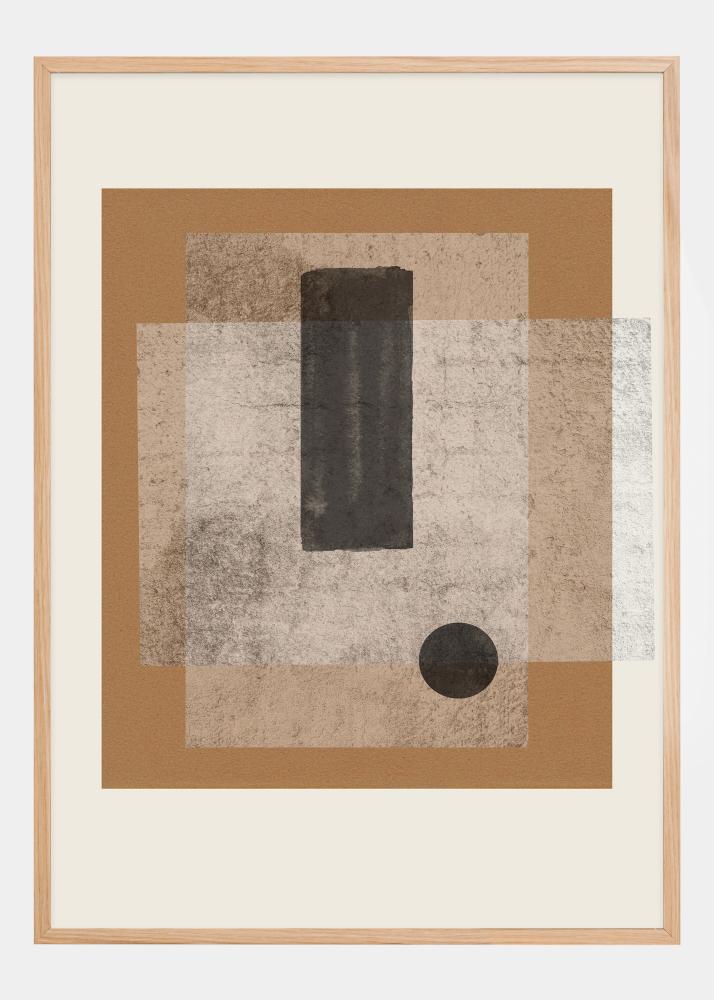 Această poster este un omagiu adus maeștrilor artei abstracte, ale căror lucrări se jucau cu forma și textura pentru a crea echilibru și profunzime. Dreptunghiurile suprapuse în nuanțe de maro, negru și gri creează o senzație de spațiu și dimensiune, în timp ce cercul solitar adaugă o dinamică subtilă, dar puternică, compoziției.