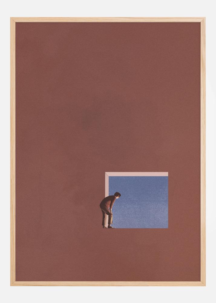 Această poster conceptuală și sugestivă surprinde o persoană care se apleacă înainte, privind printr-o deschidere pătrată într-un spațiu albastru care sfâșie suprafața maro înconjurătoare. Această imagine simplă dar puternică poate fi văzută ca o reprezentare a curiozității și dorinței umane de a explora și descoperi necunoscutul. De asemenea, poate fi o metaforă pentru fereastra oportunităților și importanța de a profita de șansele care apar.
