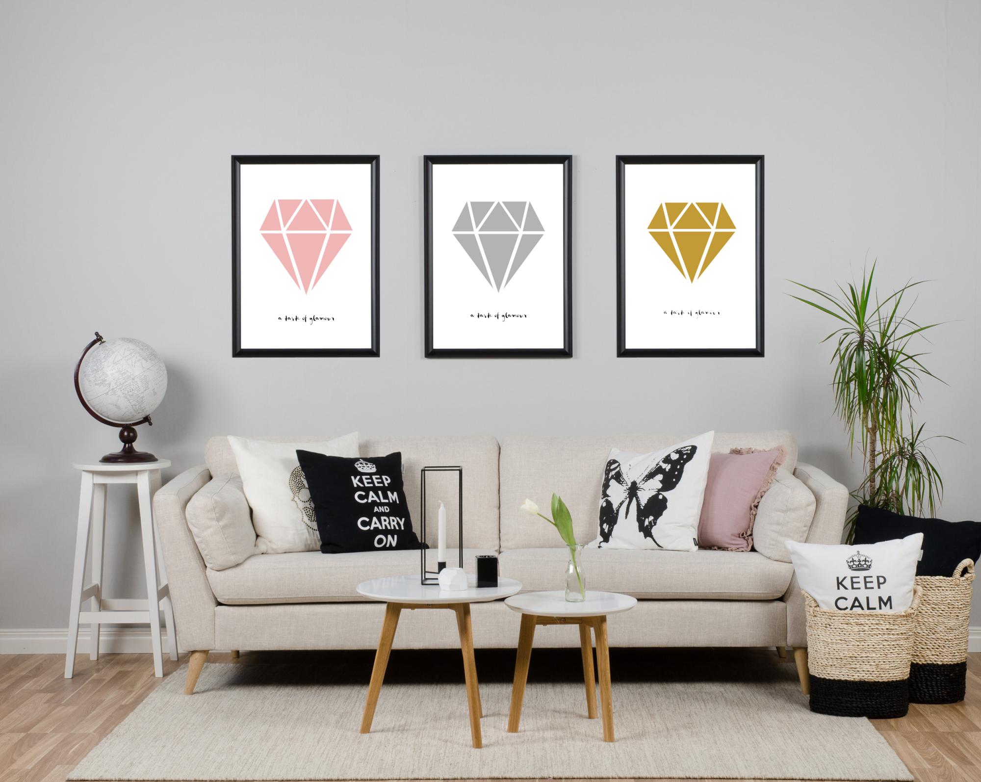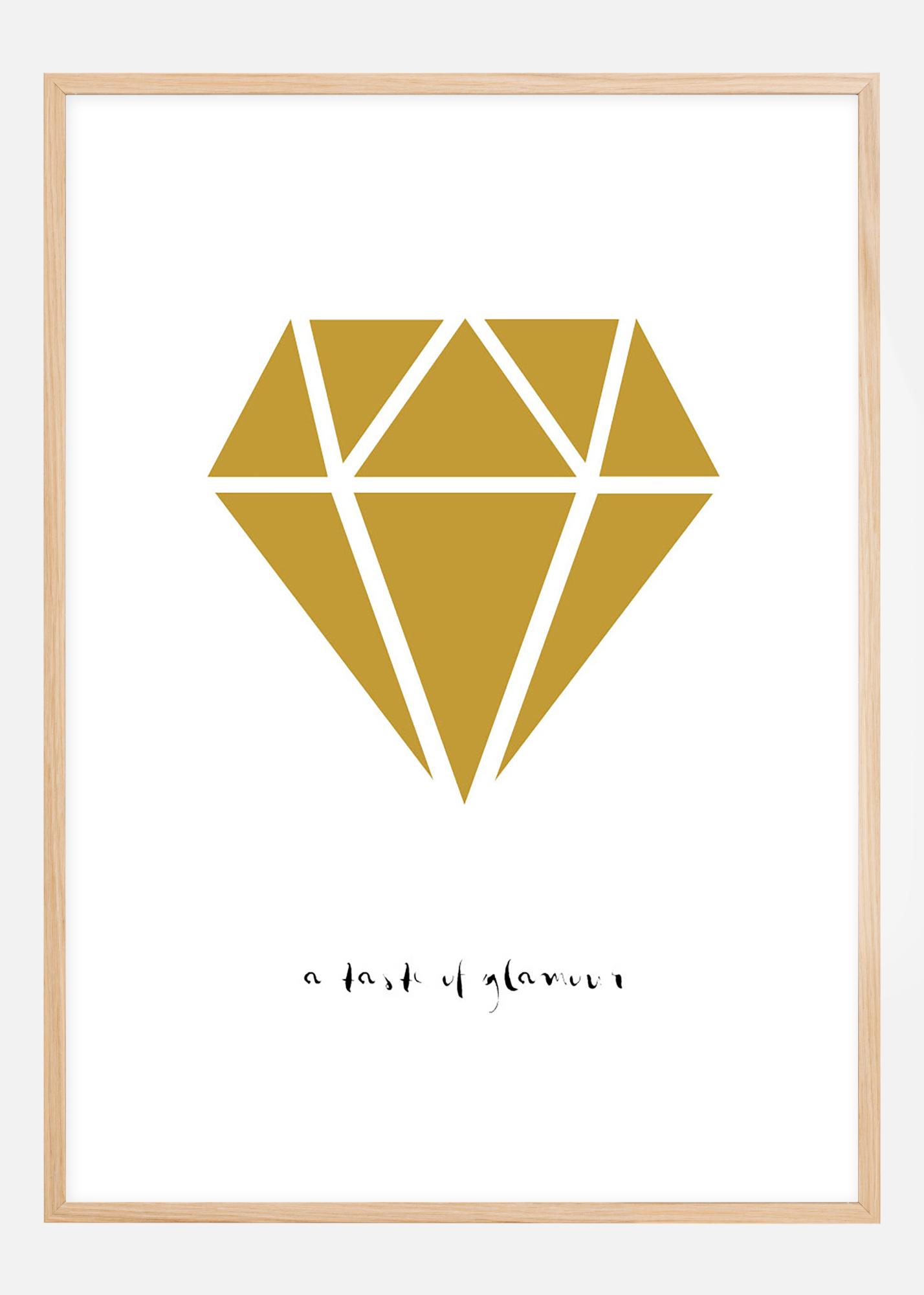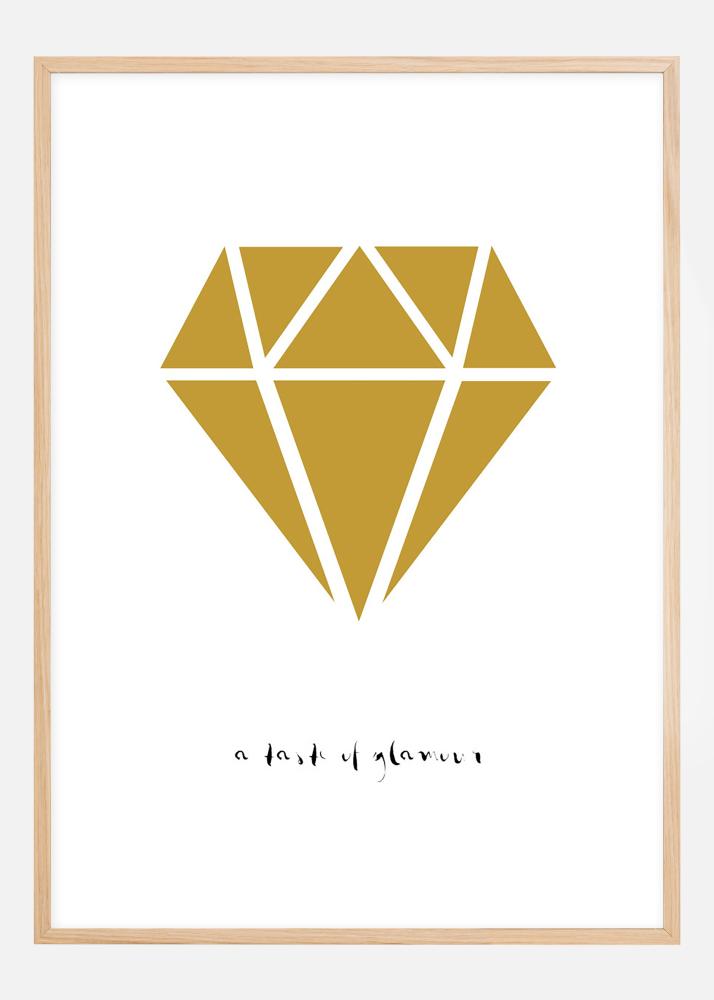 Diamantele sunt cele mai bune prietene ale unei fete, însă aici într-o formă mai accesibilă sub formă de imprimeu grafic. Oferă-i casei tale un sentiment de lux și rafinament cu un poster elegant care prezintă motivul unui diamant auriu pe un fundal alb, cu textul "un gust de glamour". Toți avem nevoie de puțin glamour din când în când, iar aceasta este o modalitate simplă de a adăuga puțin mai mult din acesta în viața de zi cu zi.