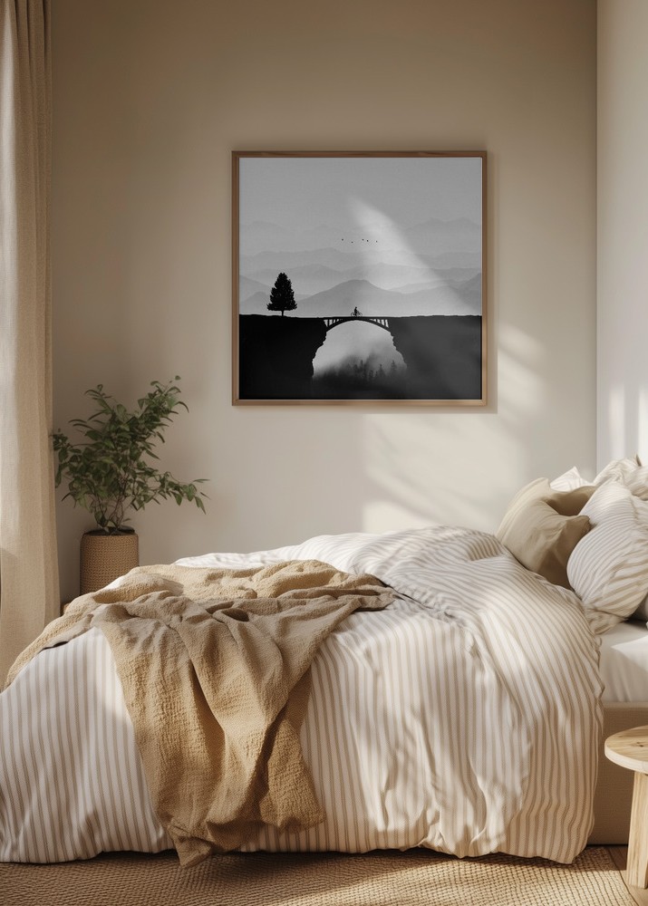 Peisaj / Grafică / Negru și alb / Motiv de natură / Munte / Drumuri