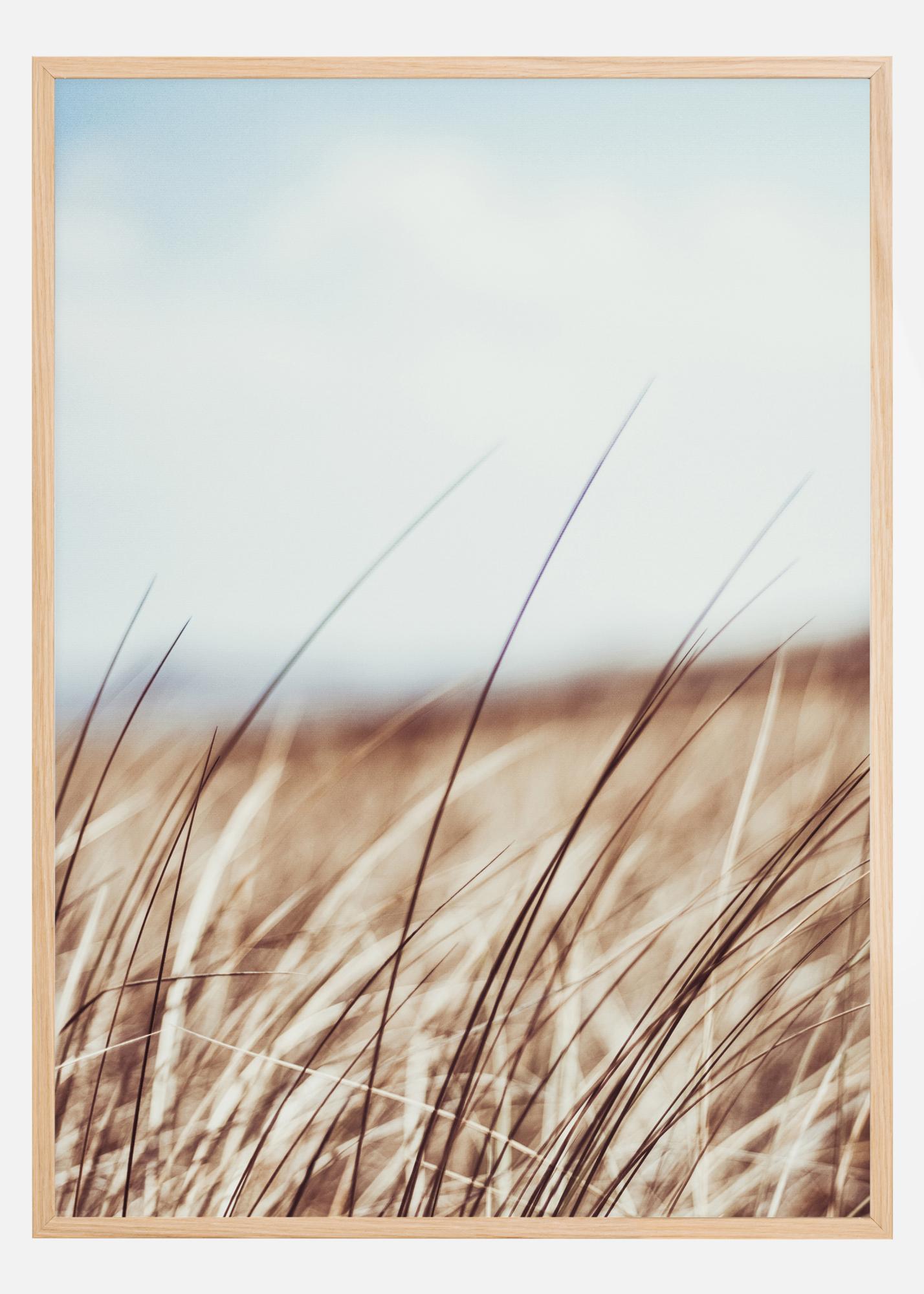 Un poster simplu cu iarbă care flutură în vânt sub un cer albastru înnorat. Nuanțele atenuate de maro și galben ale ierbii și tulpinile lungi îndreaptă privirea spre cer și în nori. Visați departe cu ajutorul acestei pajiști liniștitoare cu iarbă lungă, agățată pe peretele dumneavoastră.