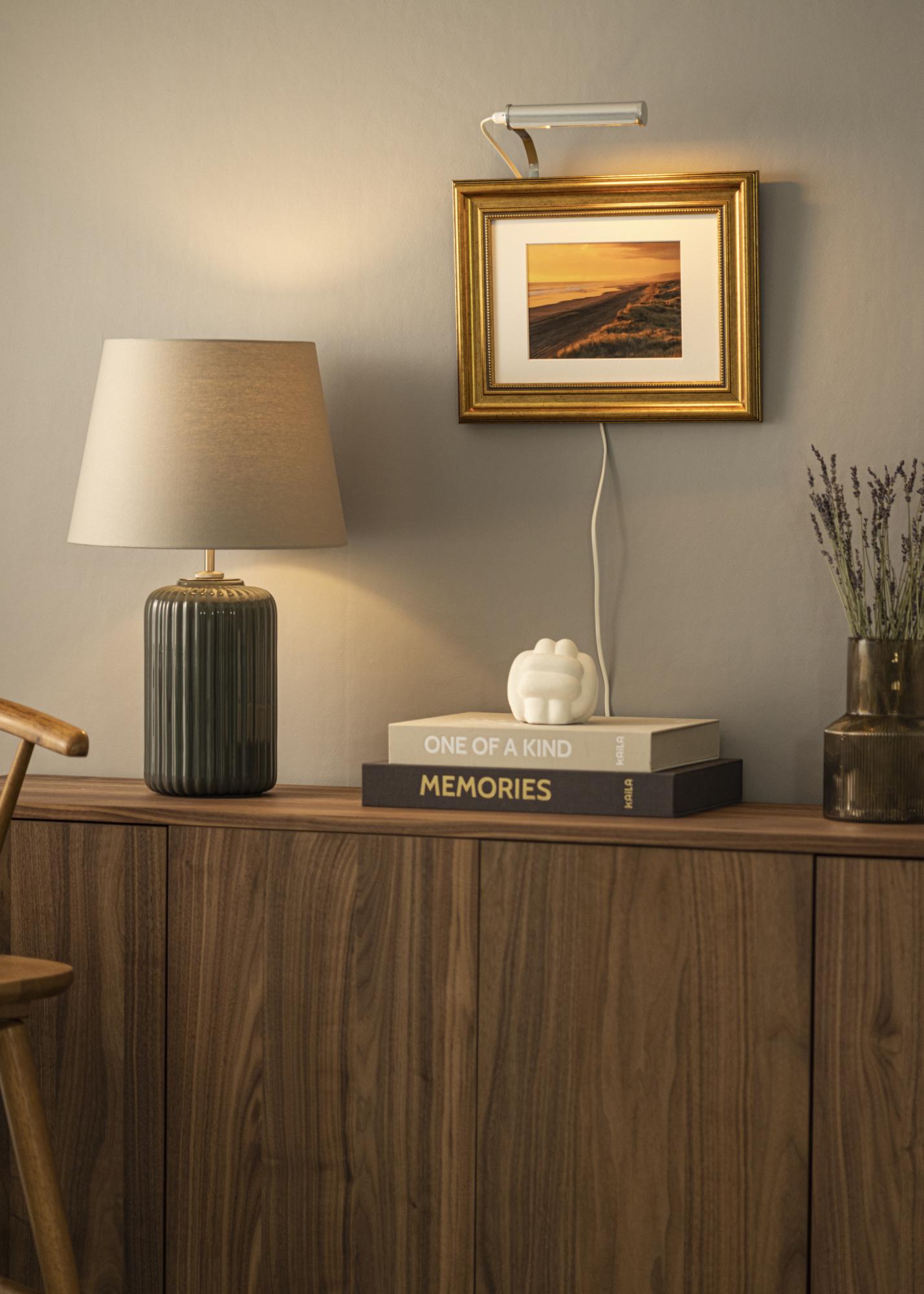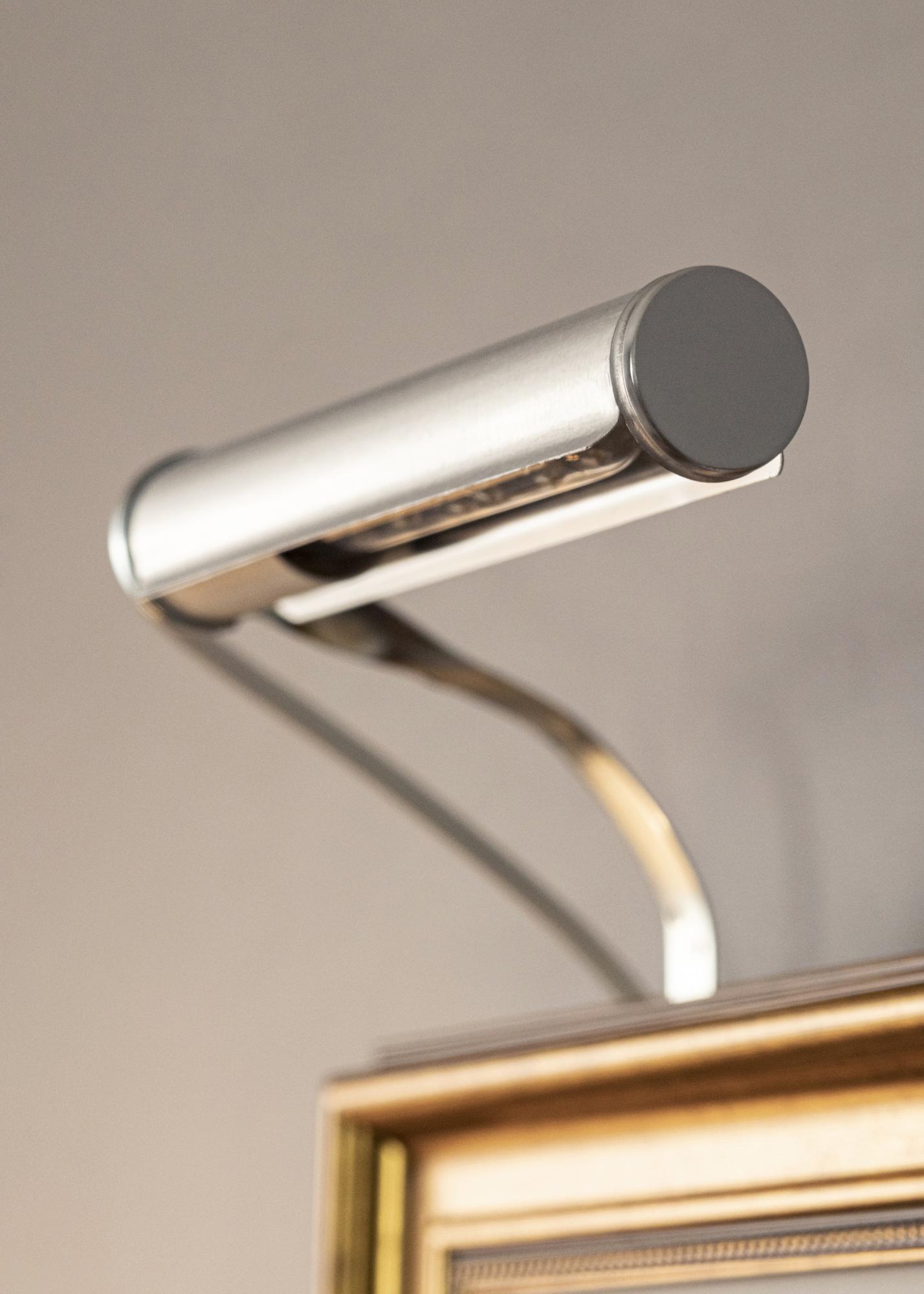 De obicei, atașezi iluminatul pentru tablouri pe partea din spate a ramei, dezavantajul fiind că este necesar un cadru de lemn (unele cadre compozite sunt de asemenea potrivite) care are un profil lat pentru a fi posibil să înșurubezi în ramă. Cu suportul nostru de montare pe perete, nu mai trebuie să te gândești la asta, ci montezi pur și simplu iluminatul direct pe peretele din spatele tabloului.