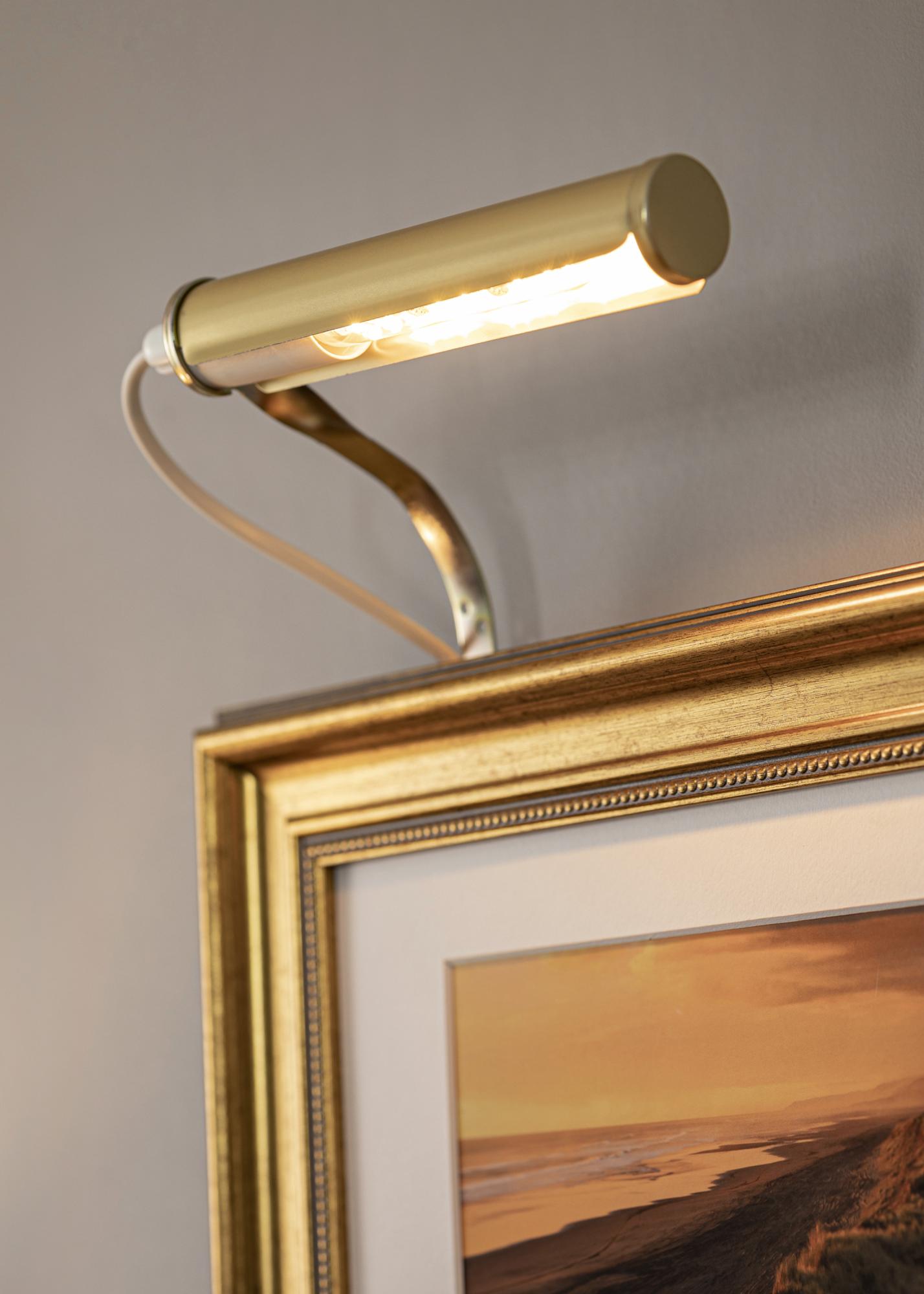 De obicei, prindeți iluminatul pentru tablouri pe spatele ramei, dezavantajul fiind că este necesar un cadru din lemn (unele cadre compozite sunt de asemenea potrivite) care are un profil larg pentru a fi posibil să înșurubați în cadrul ramei. Cu suportul nostru de perete scăpați de această problemă și pur și simplu montați iluminatul pentru tablouri direct pe peretele din spatele tabloului.