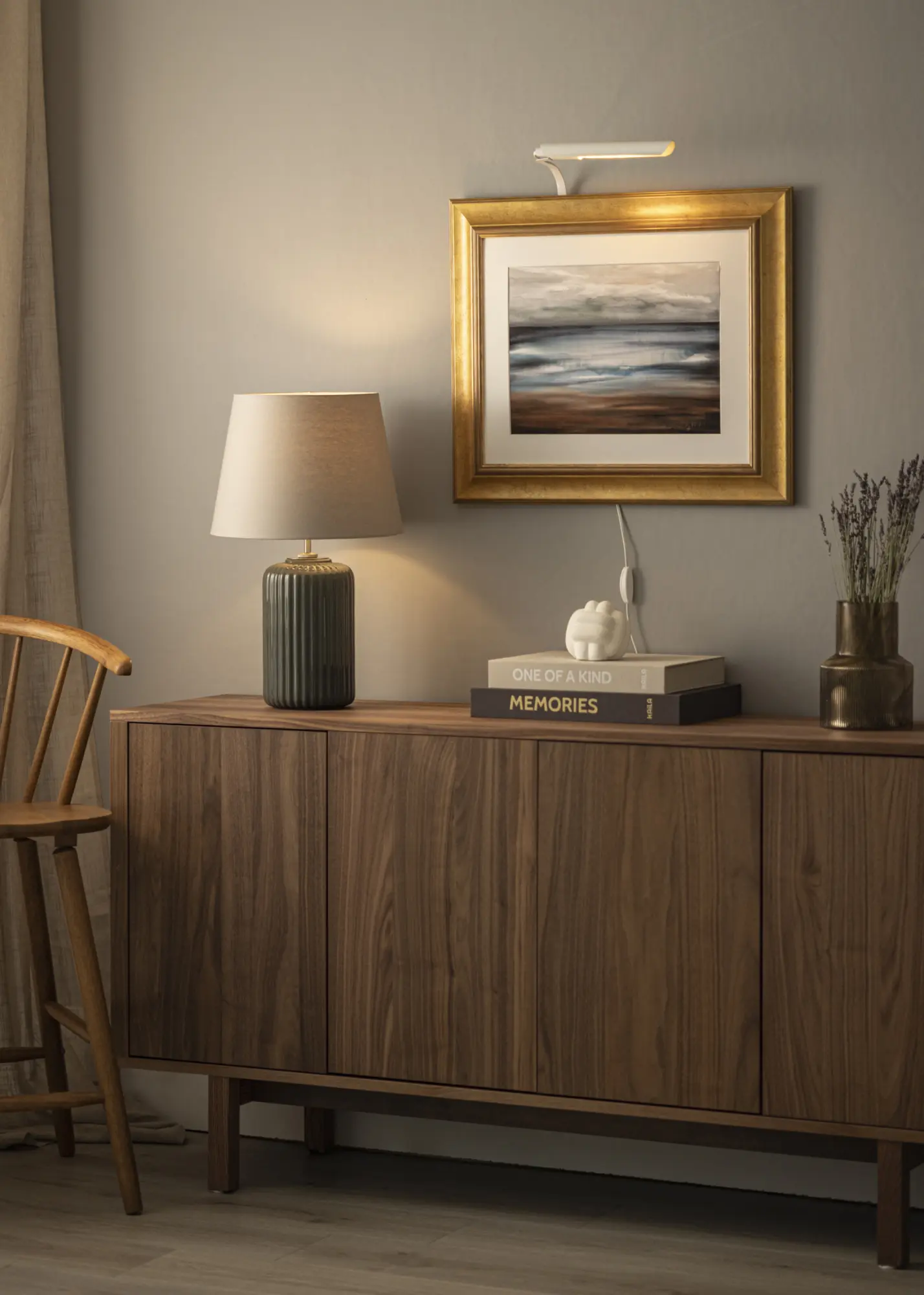 Iluminare elegantă pentru tablouri, proiectată și fabricată în Suedia. O alegere perfectă pentru imaginile tale preferate, care merită o atenție deosebită și pe care dorești să le pui în centrul atenției. O detaliu decorativ minunat care îți scoate în evidență imaginile!