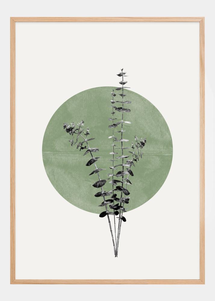 Înfrumusețează-ți camera cu un poster care surprinde frumusețea subtilă a naturii pe un fundal verde calmant care amintește de o lună. Acest afiș prezintă silueta izbitoare a eucaliptului, ale cărui frunze și ramuri detaliate par să prindă viață pe cercul verde delicat. Designul aduce un omagiu esteticii simple a naturii și creează un element relaxant în decorul tău.