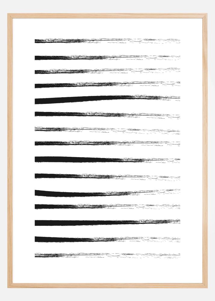 Un poster elegant cu linii negre. Liniile încep ca linii negre groase din stânga și se estompează spre dreapta pe măsură ce mișcările pensulei se termină. Această pictură ar arăta fantastic pe un perete îndrăzneț colorat, care face ca aceste linii să iasă cu adevărat în evidență.