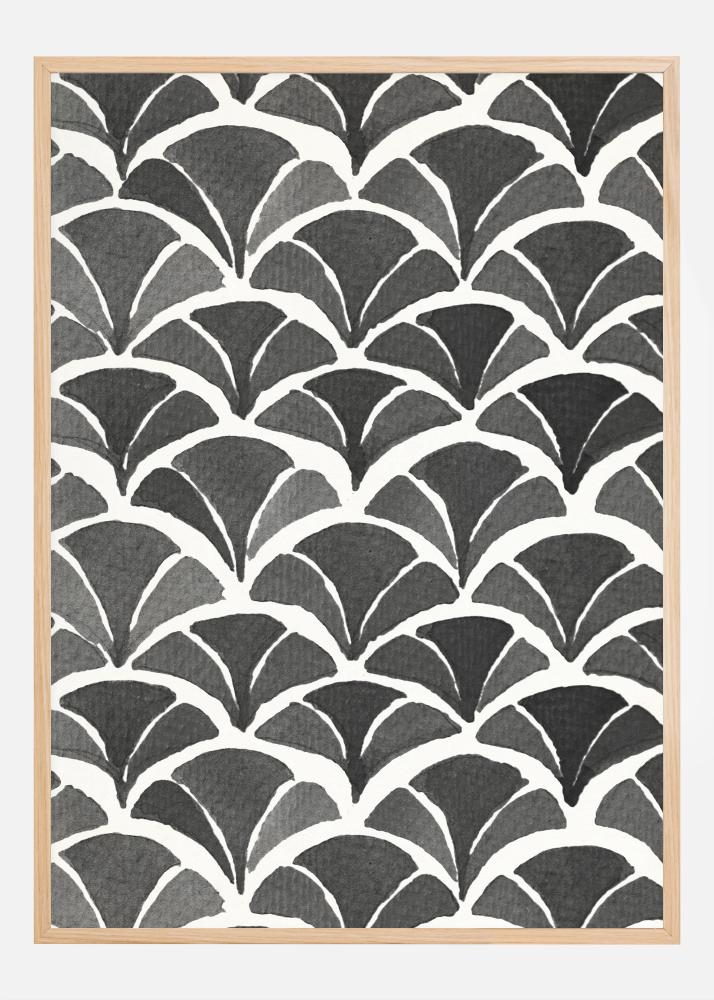 Oferă spațiului tău un strop de eleganță artistică cu acest poster care are un model captivant de frunze în alb și negru. Această imprimare are un model repetitiv care amintește de ventilatoare vintage, aranjate ritmic pe întreaga suprafață pentru a crea un sentiment de mișcare și simetrie. Contrastul elegant între alb și negru oferă un aspect clasic care se potrivește în multe stiluri de decor și medii diferite.