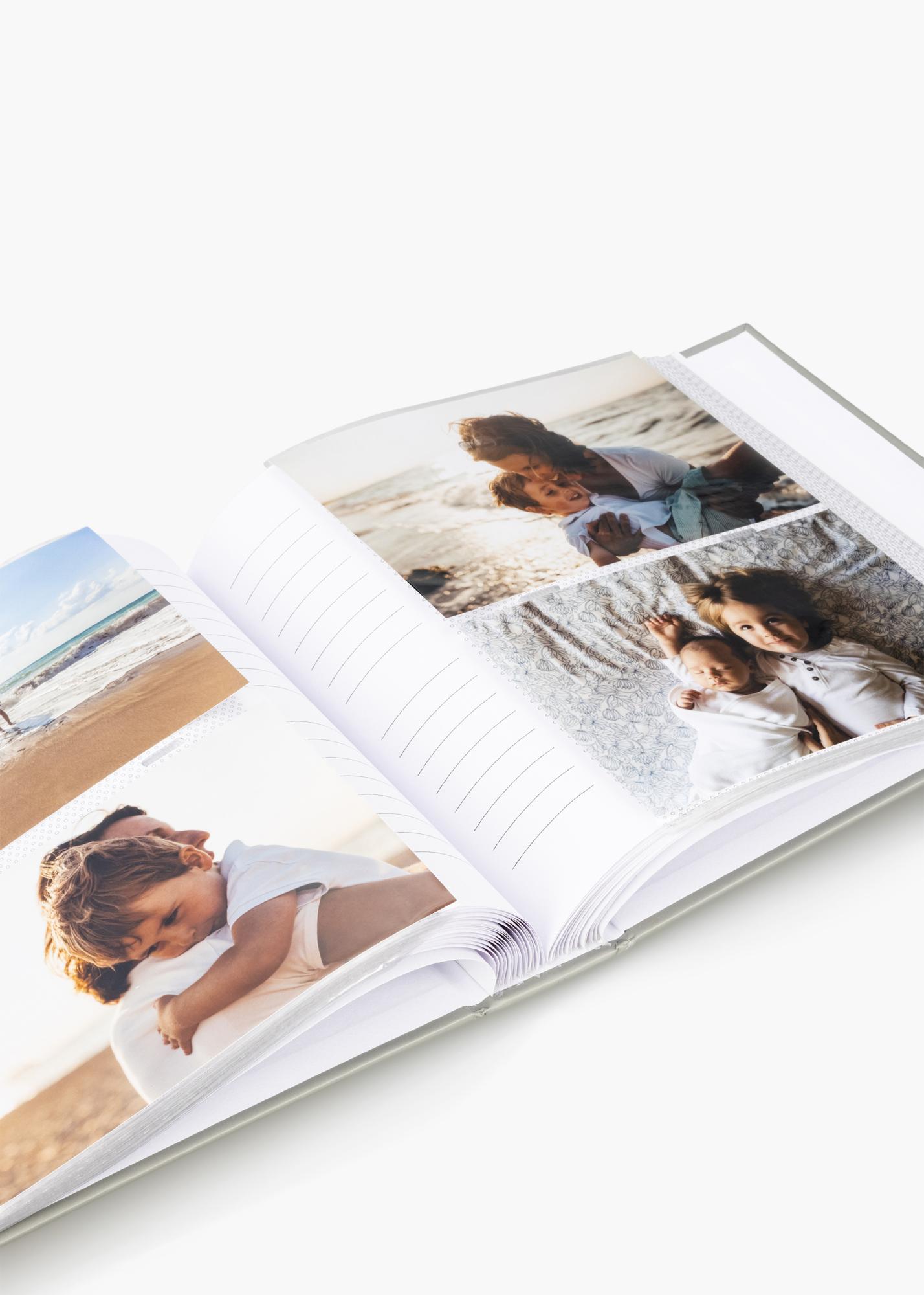 Coperta albumului este îmbrăcată într-o culoare gri atemporală care se potrivește în orice casă și stil de decor. Paginile alb oferă un fundal curat și proaspăt pentru fotografiile dumneavoastră, în timp ce orientarea orizontală a imaginii evidențiază farmecul unic al fiecărei fotografii. Pentru fiecare fotografie există, de asemenea, un câmp de scriere potrivit unde puteți nota detalii memorabile sau date, făcând albumul atât personal, cât și informativ.
