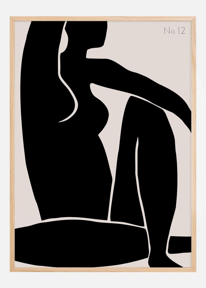 Contrastul dintre figura neagră și fundalul luminos nu este doar îndrăzneț, ci ilustrează și întâlnirea dintre lumină și umbră, formă și gol, oferind un efect grafic puternic. 'No. 12' este un afiș care este la fel de mult o experiență de artă modernă cât și un element decorativ, fiind perfect pentru cei care caută o estetică contemporană cu o notă dramatică. Este ideal pentru stilurile de design interior minimaliste sau monocrome, unde poate sta ca un accent solitar puternic sau poate fi combinat cu alte lucrări similare pentru a crea un perete de imagini impresionant.