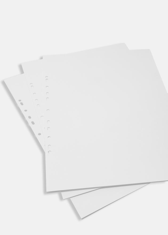 10 coli de carton alb fără acid în format A3. Perfecte pentru a aduna decupaje din ziare, rețete și altele similare.
