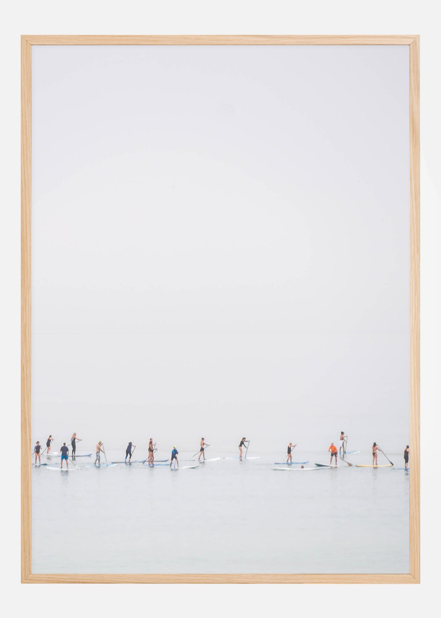 Un poster cu unghi larg cu un grup de copii care se joacă în mare. Bucură-te de măreția acestei lucrări minimaliste. Toți copiii ocupă partea de jos a imaginii, în timp ce marea vastă și cerul se întind deasupra și dedesubtul lor. Creează iluzia de lumină și spațiu cu această imagine extinsă.
