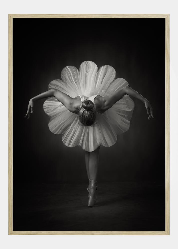 Un poster elegant cu o balerină într-o fustă asemănătoare unei flori. Acest poster frumos va stârni discuții privind caracterul său abstract și va aduce casei tale un sentiment de uimire.