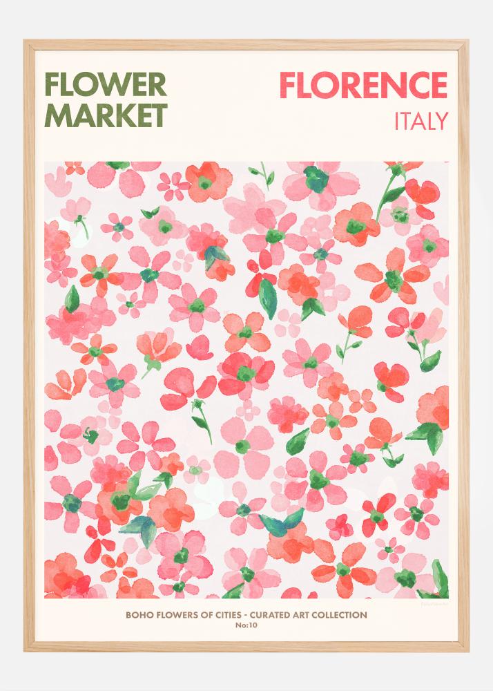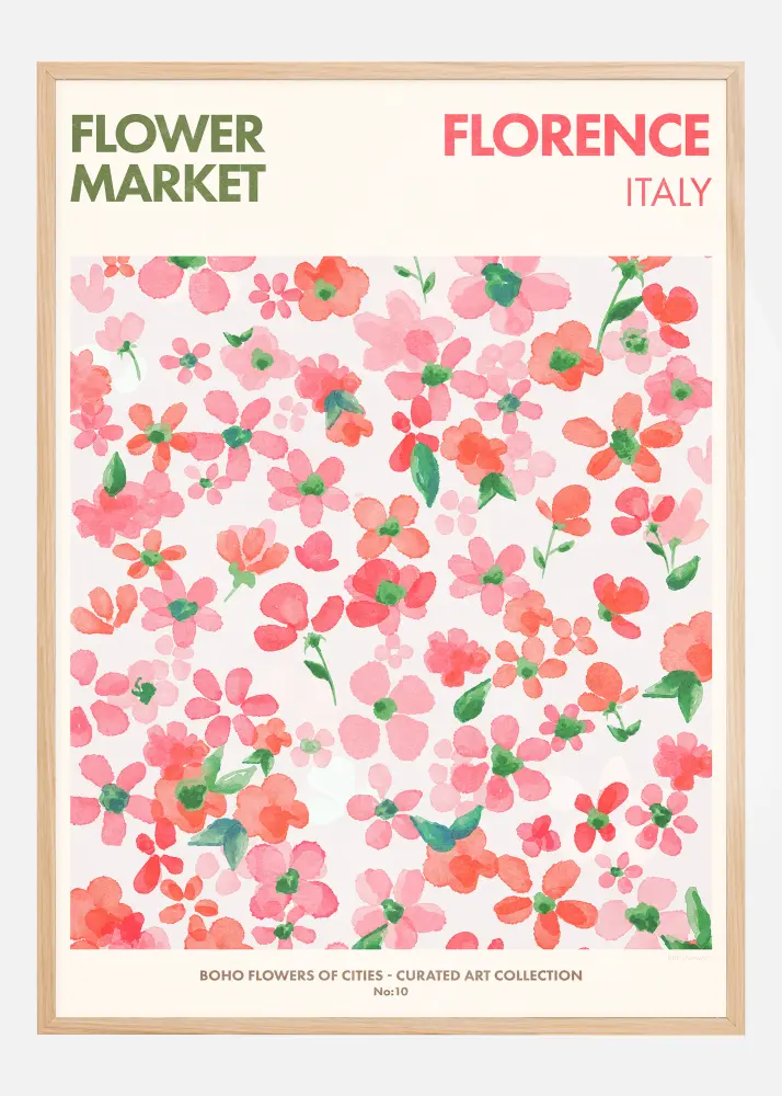 Încapsulează esența unui oraș italian înfloritor cu acest poster frumos din colecția noastră 'BOHO Flowers of Cities' - Curated Art Collection. Acest poster este un omagiu adus Florenței și prezintă un câmp de flori pictate în acuarelă în nuanțe variate de roz și roșu, care evocă piețele florale vibrante din inima Italiei. Această operă de artă delicat realizată este perfectă pentru a aduce o notă din romantismul și frumusețea Florenței în orice spațiu.