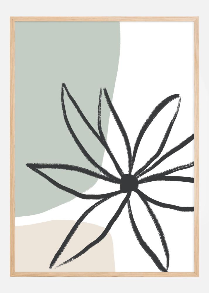 Această afișă, "Flower Mint and Cream", emană o simplitate care este atât contemporană, cât și elegantă în mod atemporal. Motivul său prezintă o floare stilizată în contururi negre puternice pe un fundal liniștitor de verde mentă, creând un contrast atât îndrăzneț, cât și echilibrat. Tonul cremos, neutru, care îmbracă jumătatea inferioară a imaginii, oferă un contrast moale ce completează designul minimalist.