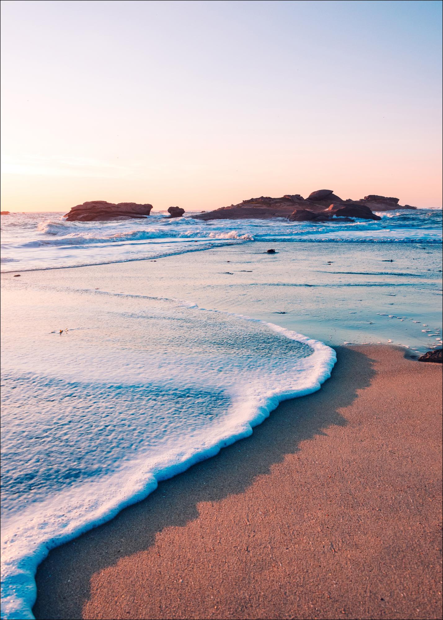Un poster marin cu o plajă largă unde valurile și marea se izbește de țărm. Lumina solară blândă aruncă umbrele valurilor pe nisip și creează un mediu liniștit în care te poți imagina pe tine însuți. Lasă-te purtat în visurile tale cu acest poster minunat.