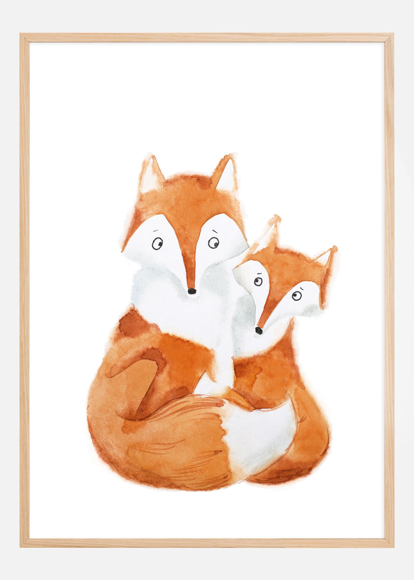 Introduceți un sentiment de căldură și apropiere familială cu acest poster adorabil cu o familie de vulpi. Ilustrează o vulpe mare îmbrățișându-și puiul, o imagine care emană dragoste și siguranță. Tonurile moi și pământii de ruginiu și alb din ilustrație oferă un efect natural și liniștitor, perfect pentru a crea o atmosferă confortabilă într-o cameră de copii sau orice altă parte a casei unde căldura și grijile vor fi evidențiate.