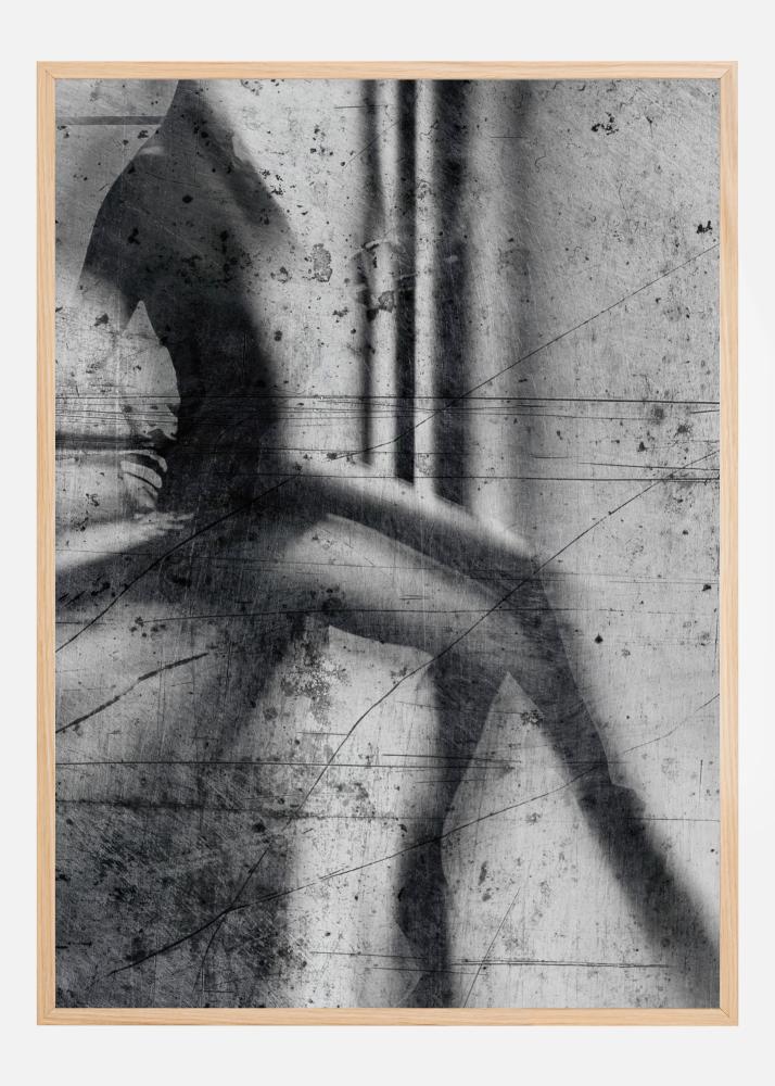 Un poster abstract cu o femeie care stă pe un zid. Imaginea alb-negru este plină de linii și margini netede pentru a crea această operă artistică, impresionistă. Puneți pe un perete alb pentru un efect dramatic sau asortați cu o culoare îndrăzneață pentru mai mult dramatism.